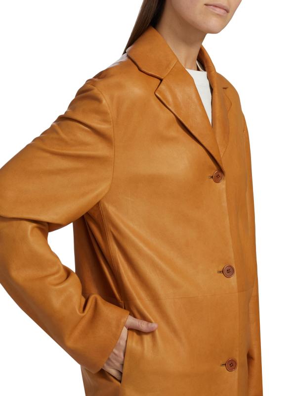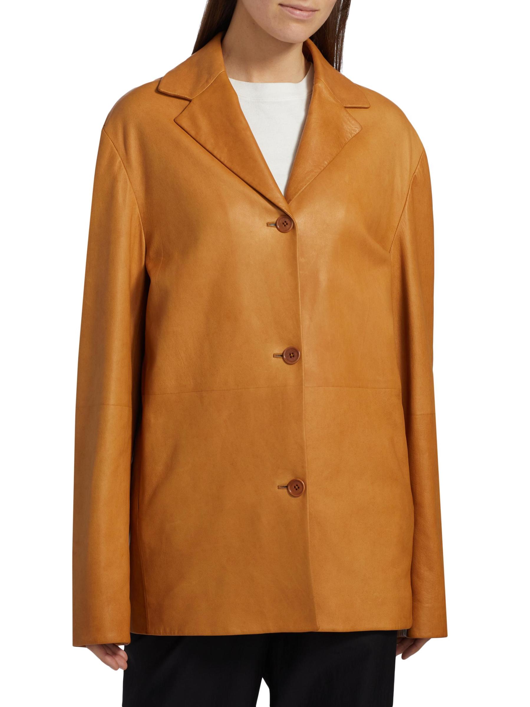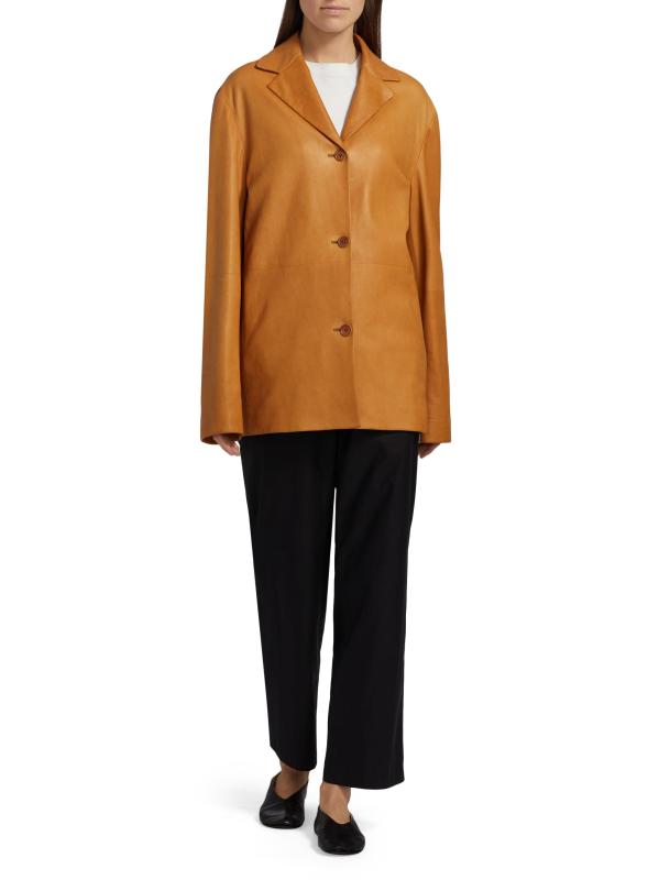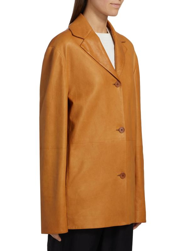 جاكيت Fabian هذا من The Row مصنوع من الجلد، ومصمم بثنيات مشدودة، وجيوب جانبية على درزات، وإغلاق بأزرار أمامية.