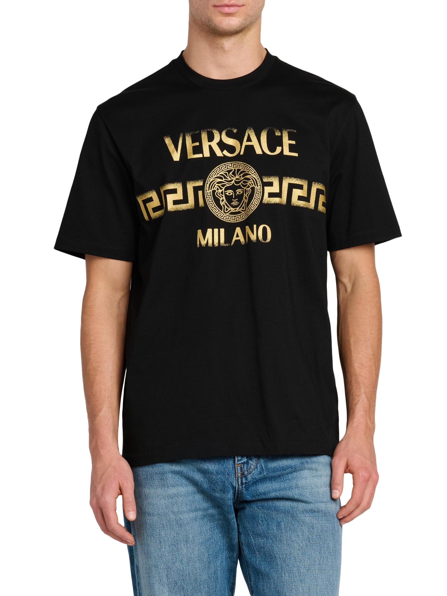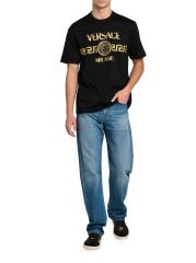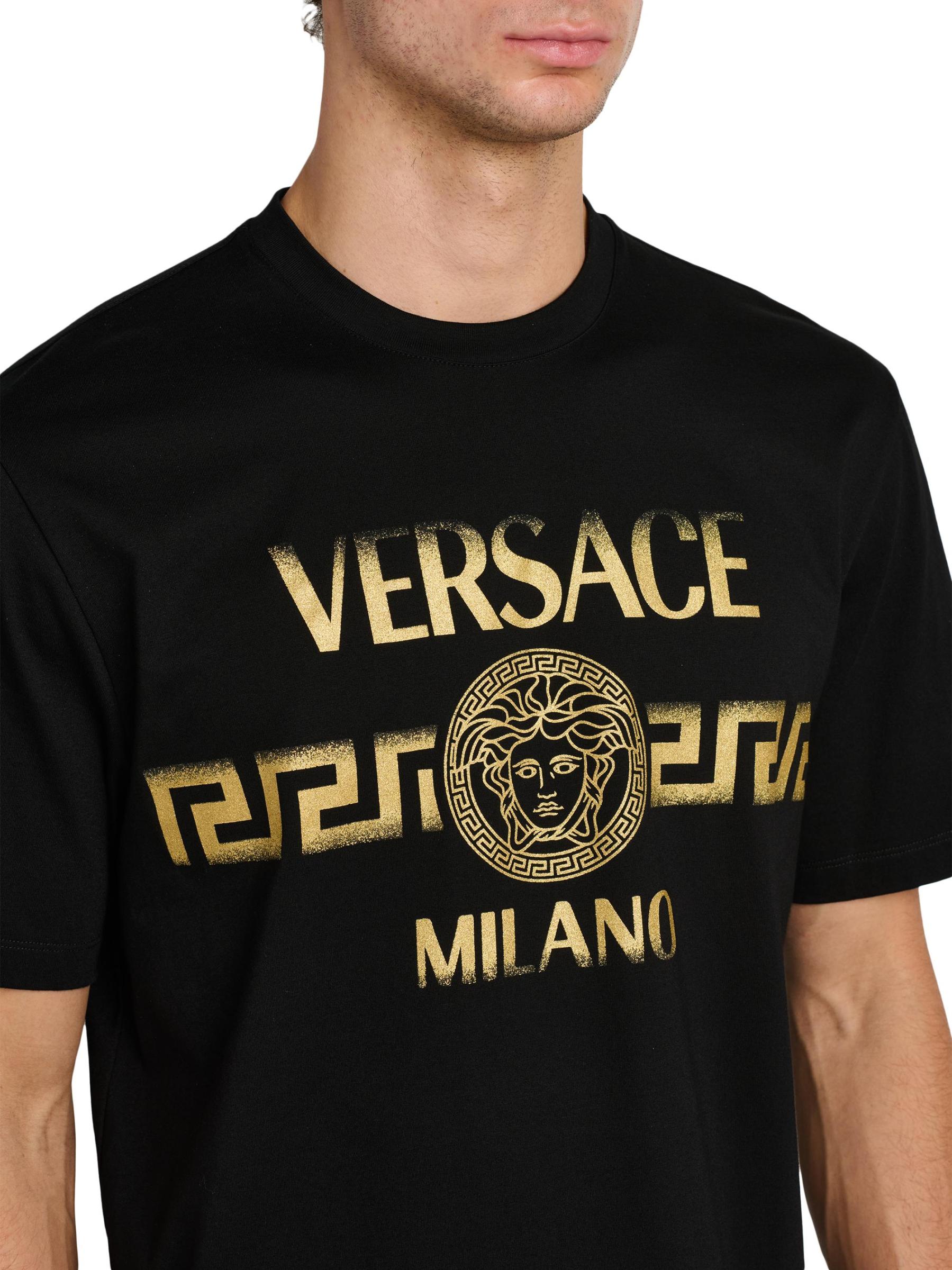 تيشيرت فيرساتشي ذو الرقبة المستديرة هذا مصنوع من القطن الجيرسي ويتميز بطباعة شعار Greca الباهت على الصدر.