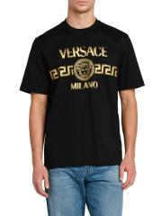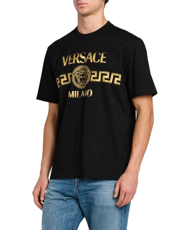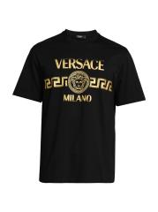 تيشيرت فيرساتشي ذو الرقبة المستديرة هذا مصنوع من القطن الجيرسي ويتميز بطباعة شعار Greca الباهت على الصدر.رقبة مستديرة أكمام قصيرة تسحب قطن بنسبة 100% تنظيف جاف صُنع في إيطاليا