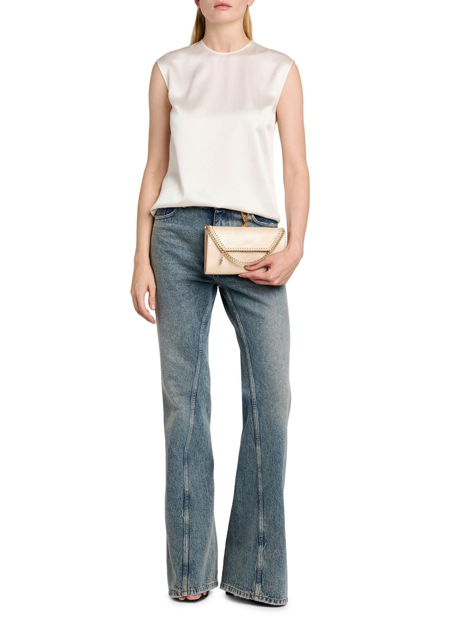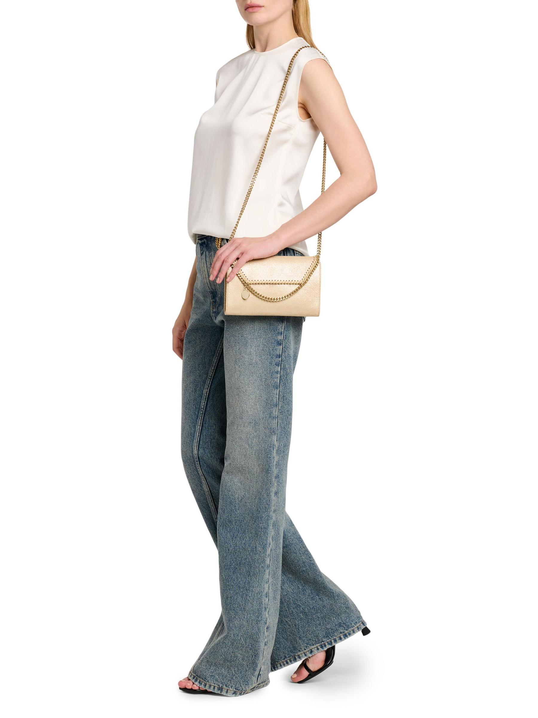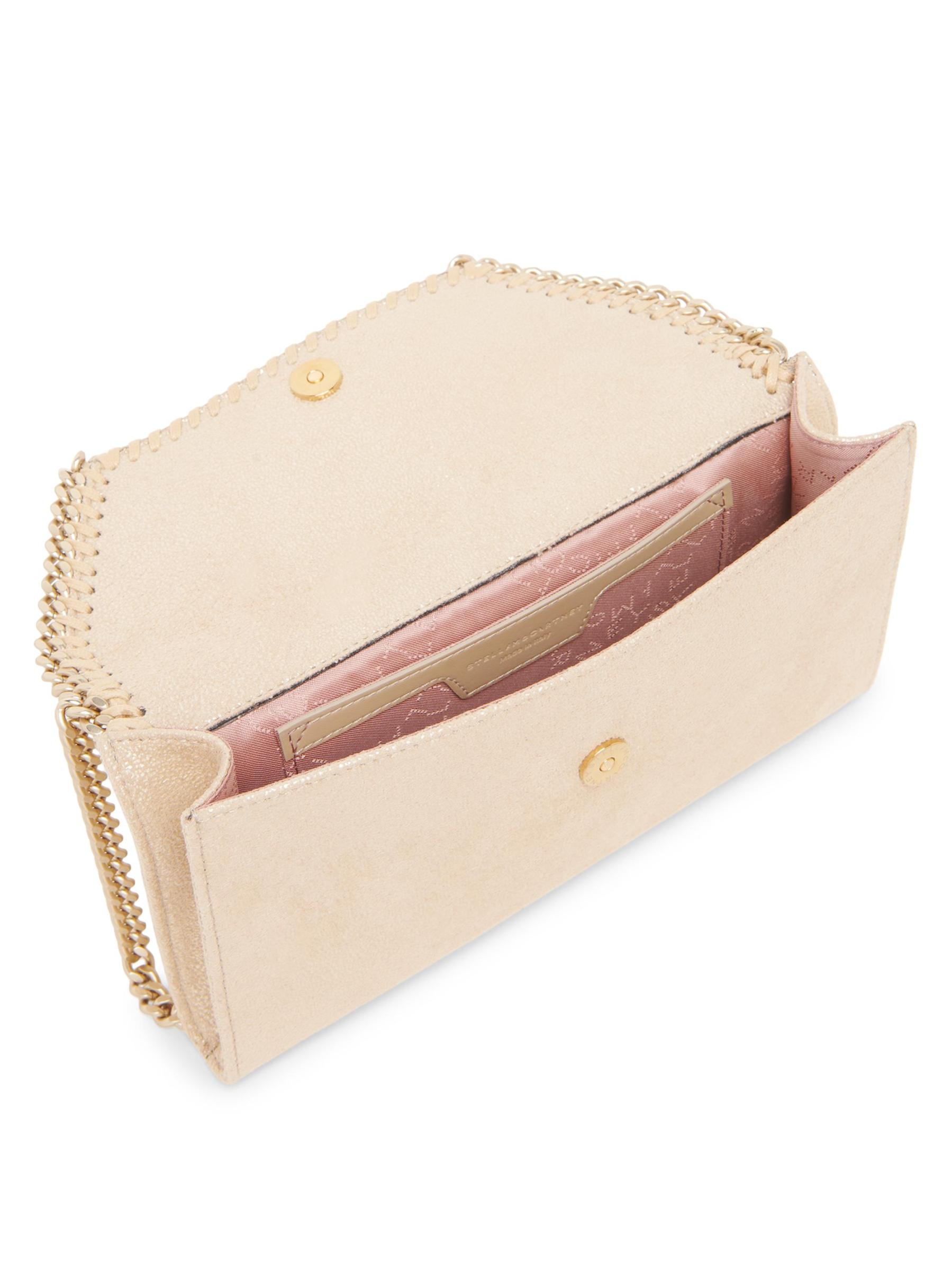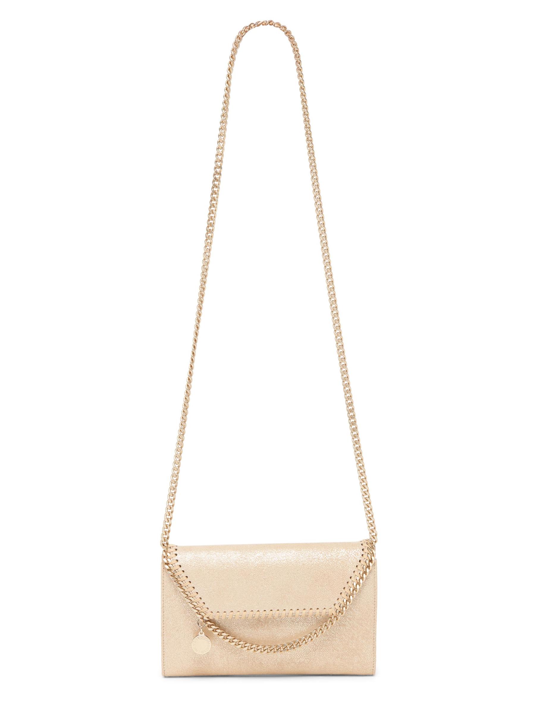 تتميز هذه المحفظة من Stella McCartney بحزام سلسلة باللون الذهبي وأجهزة متناسقة وجيب داخلي منزلق لتخزين سلس.