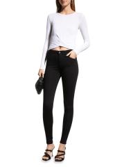يأتي الدنيم الفاخر ذو المقاس الضيق والارتفاع المرتفع الذي يطيل الساق باللون الأسود الداكن لسهولة الانتقال من النهار إلى الليل.