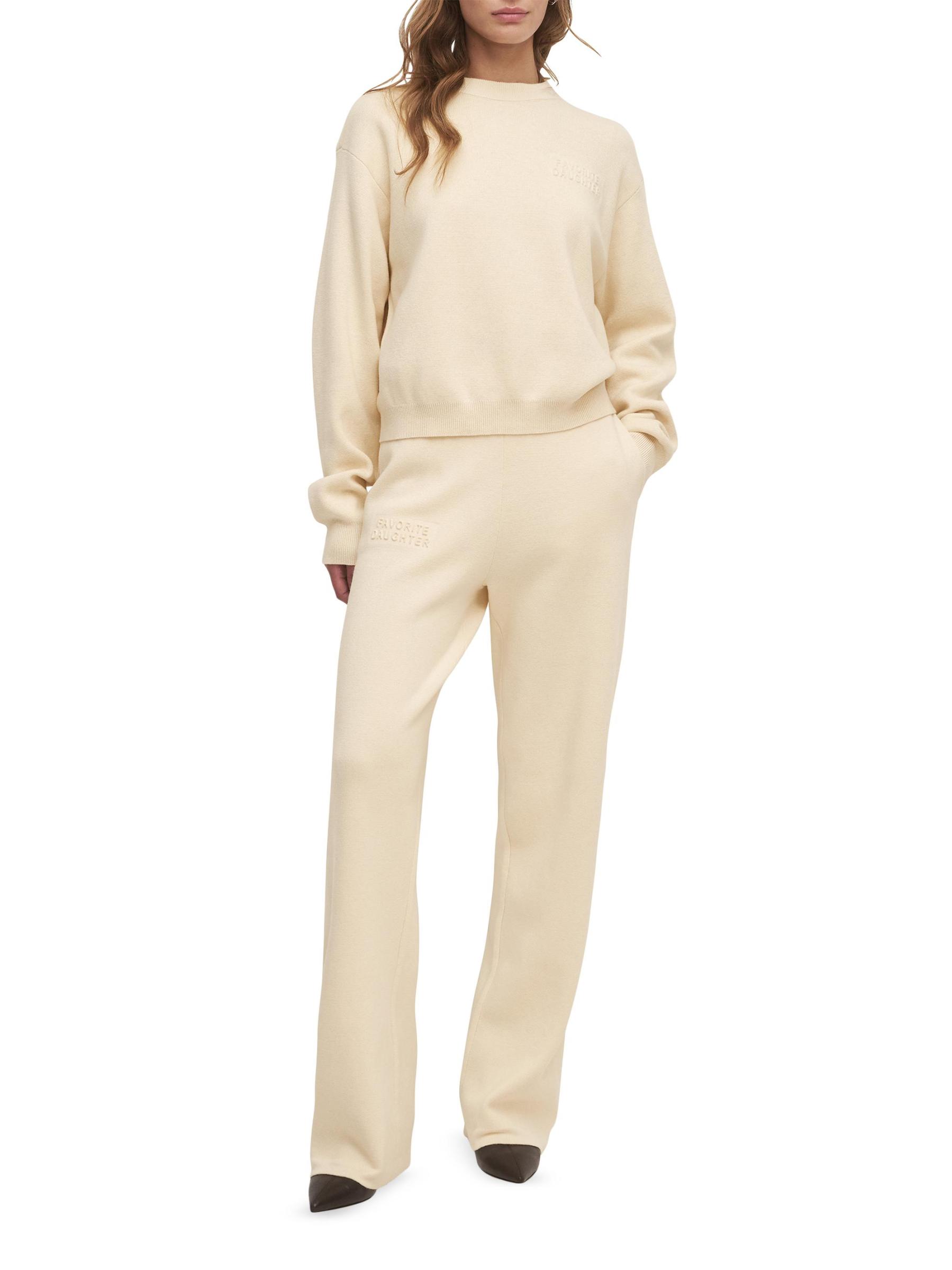 يتميز سويت شيرت Favourite Daugher's Fatigue Sisters المصنوع من مزيج الكشمير المخملي المحبوك بشعار Favourite Daughter المنقوش وياقة مستديرة وحواف محبوكة على شكل أضلاع.