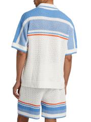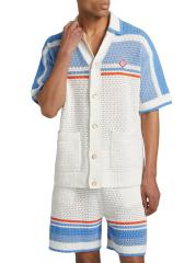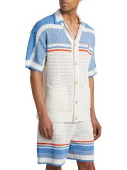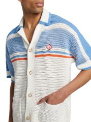 يتميز قميص كازابلانكا هذا، المحبوك من القطن، بتصميم مخطط وأزرار لؤلؤية صناعية في الفتحة الأمامية.
