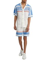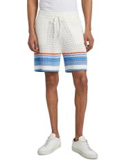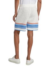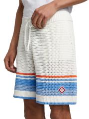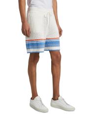 يتميز شورت كازابلانكا هذا، المحبوك من القطن بنسيج الكروشيه الصناعي، بخطوط متعددة الألوان وخصر مضلع برباط.