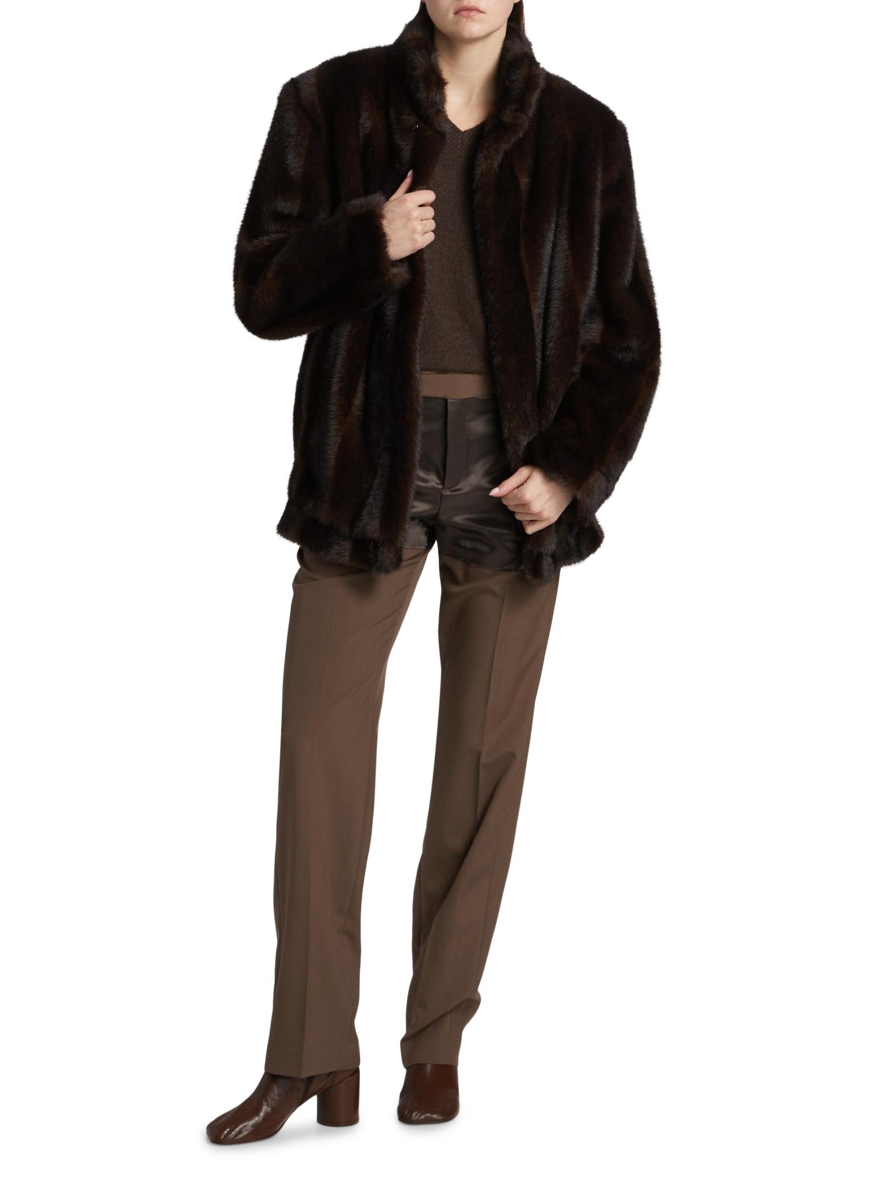 صُنع هذا الجاكيت الفخم من MM6 Maison Margiela في إيطاليا من الفرو الصناعي ويتميز بياقة مدورة وهمية وجيوب جانبية منزلقة.