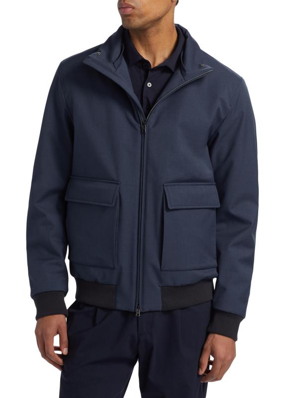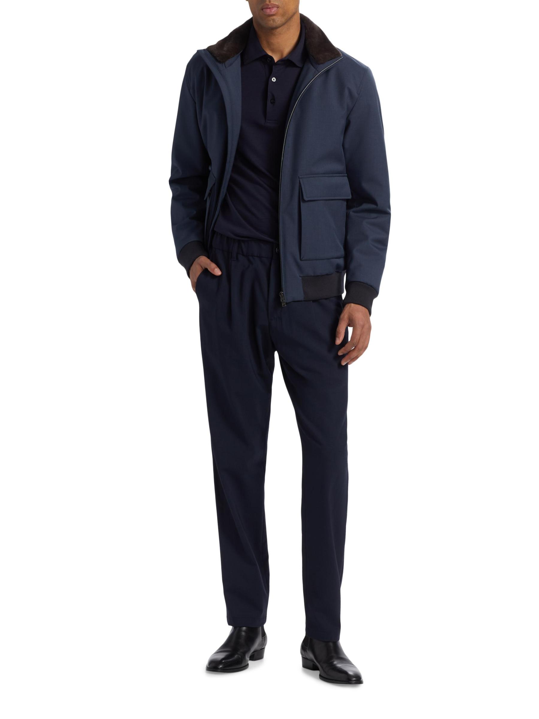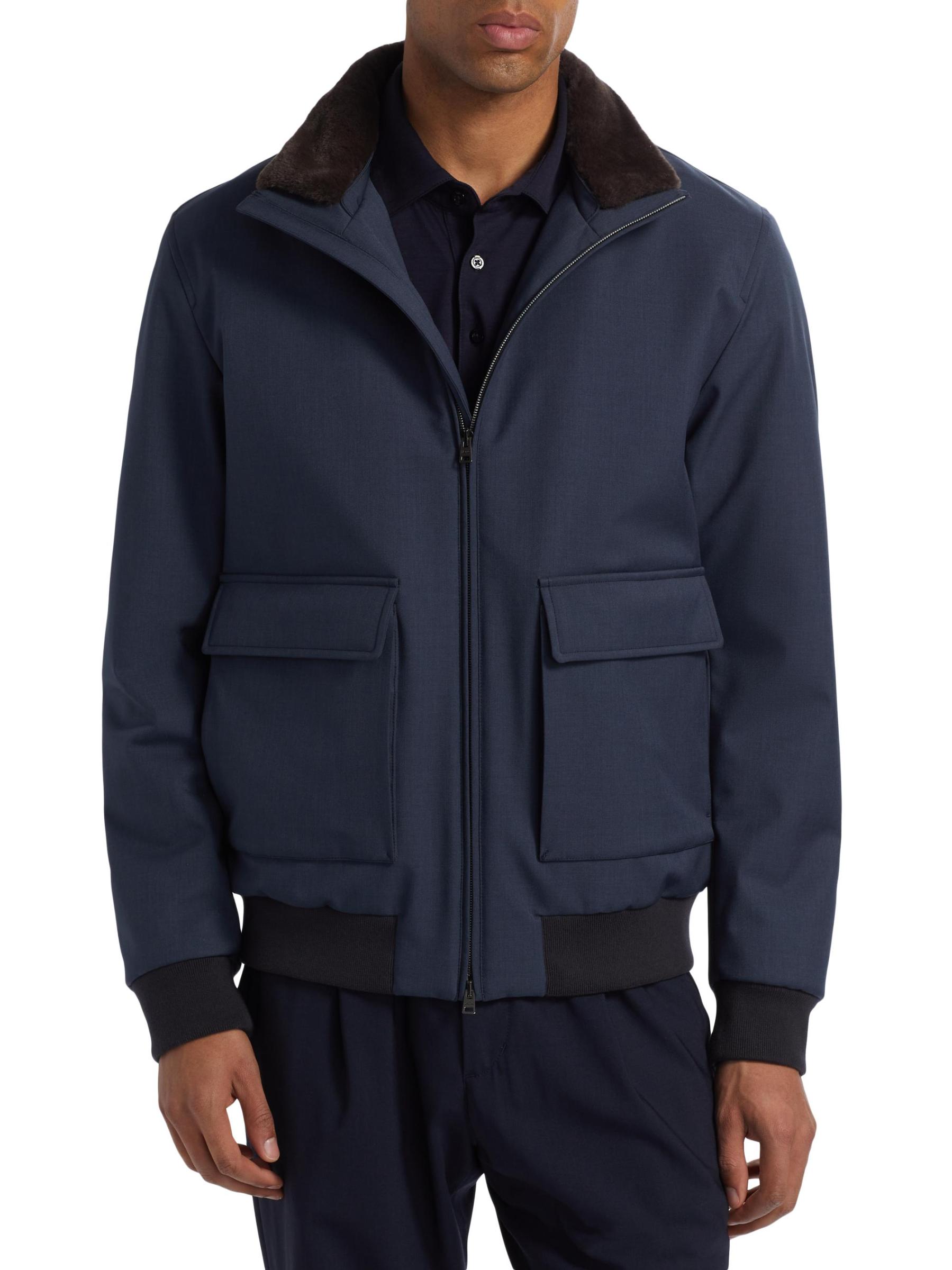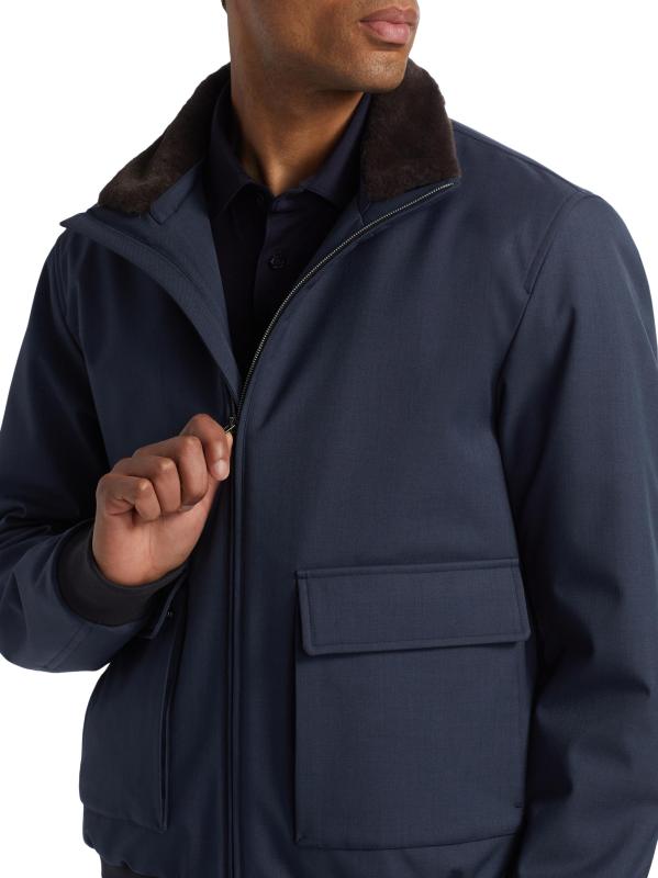 تم تصميم جاكيت بومبر هذا من هيرنو، المصنوع في إيطاليا، بياقة مزينة بالفرو الصناعي وجيوب بغطاء.