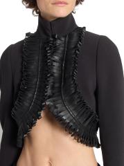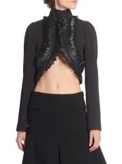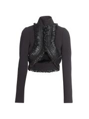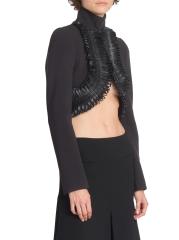 صُنعت هذه السترة القصيرة من Alaïa في إيطاليا، وهي مزينة بجلد صناعي مرن.