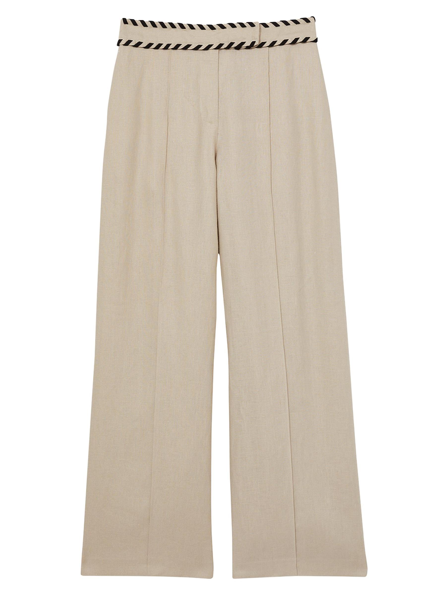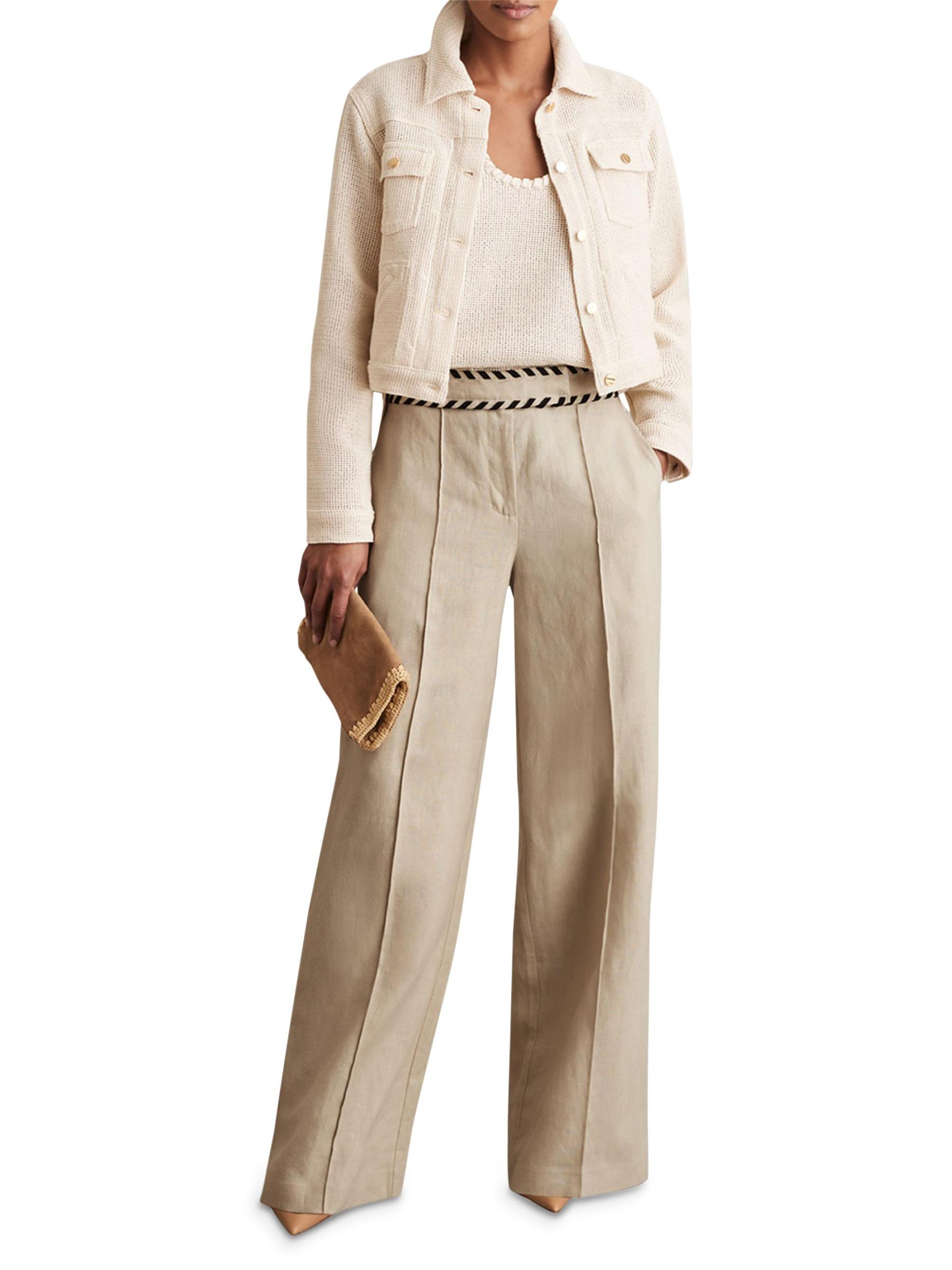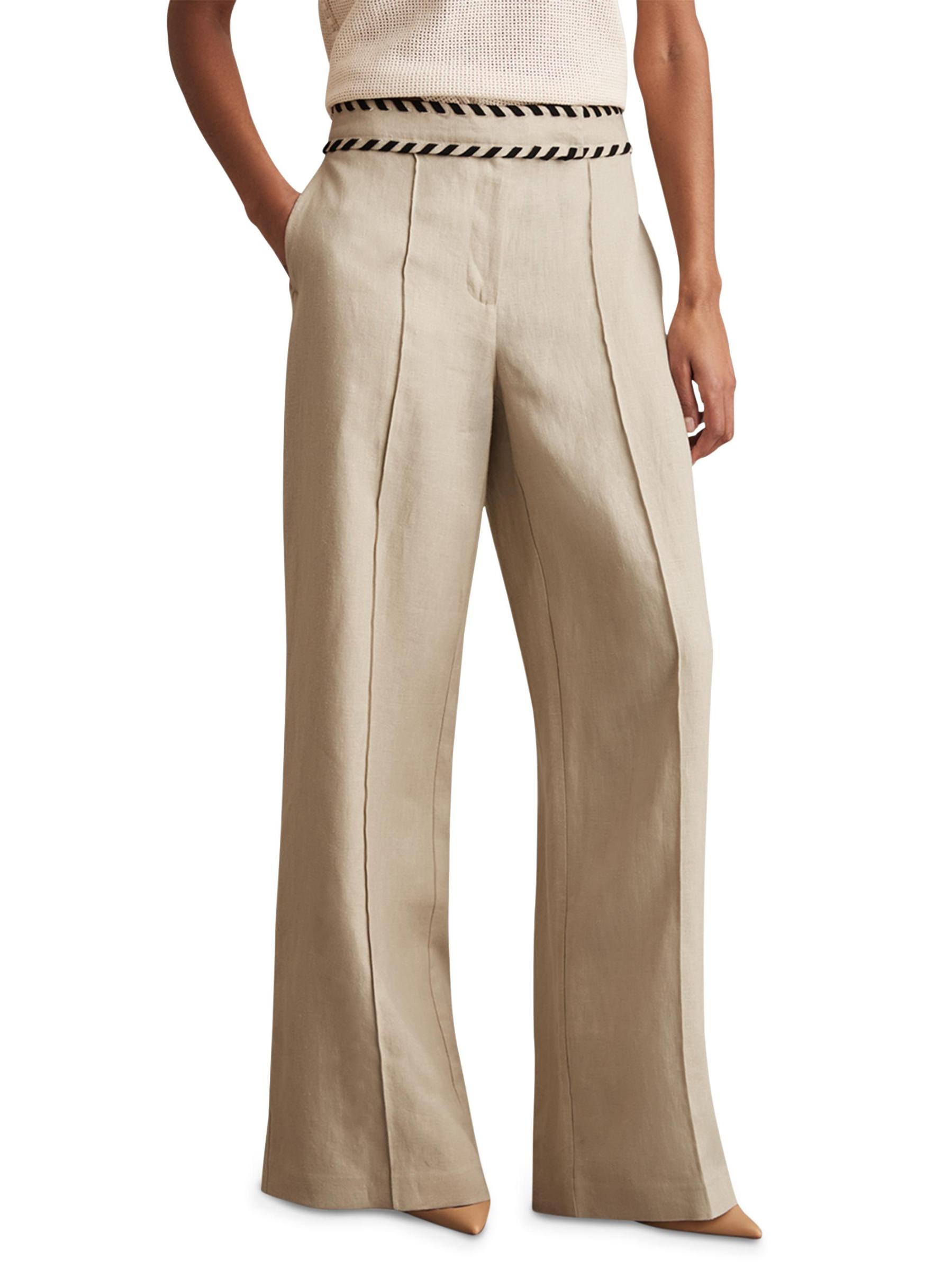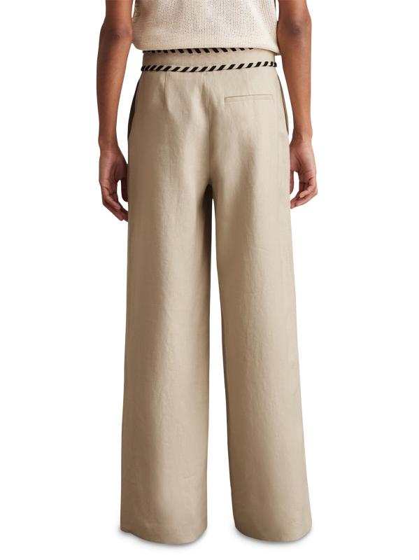 صُمم بنطال Reiss Fawn بمقاس واسع من الكتان القابل للتهوية مع ربطات أمامية وخياطة متباينة على الخصر. تم تصميم هذا الطراز بجيوب متعددة وشقة شاهقة تقع عالياً على الوركين.