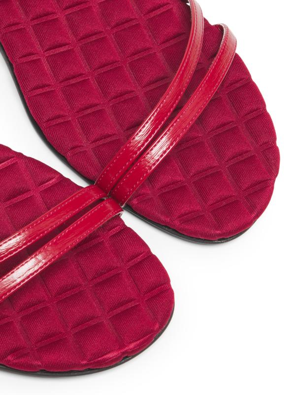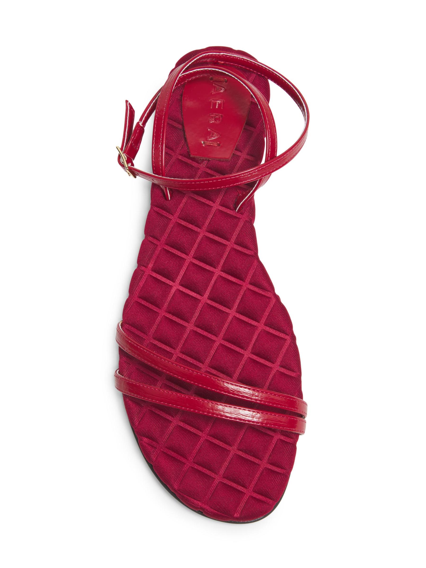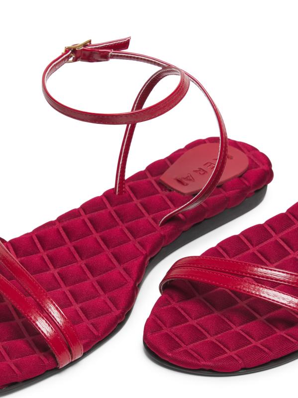 صُنع صندل Faye المسطح من Aero يدويًا من قبل حرفيين في فينيتو بإيطاليا من مواد نباتية، ويتميز بنعل داخلي مبطن وإغلاق بإبزيم.