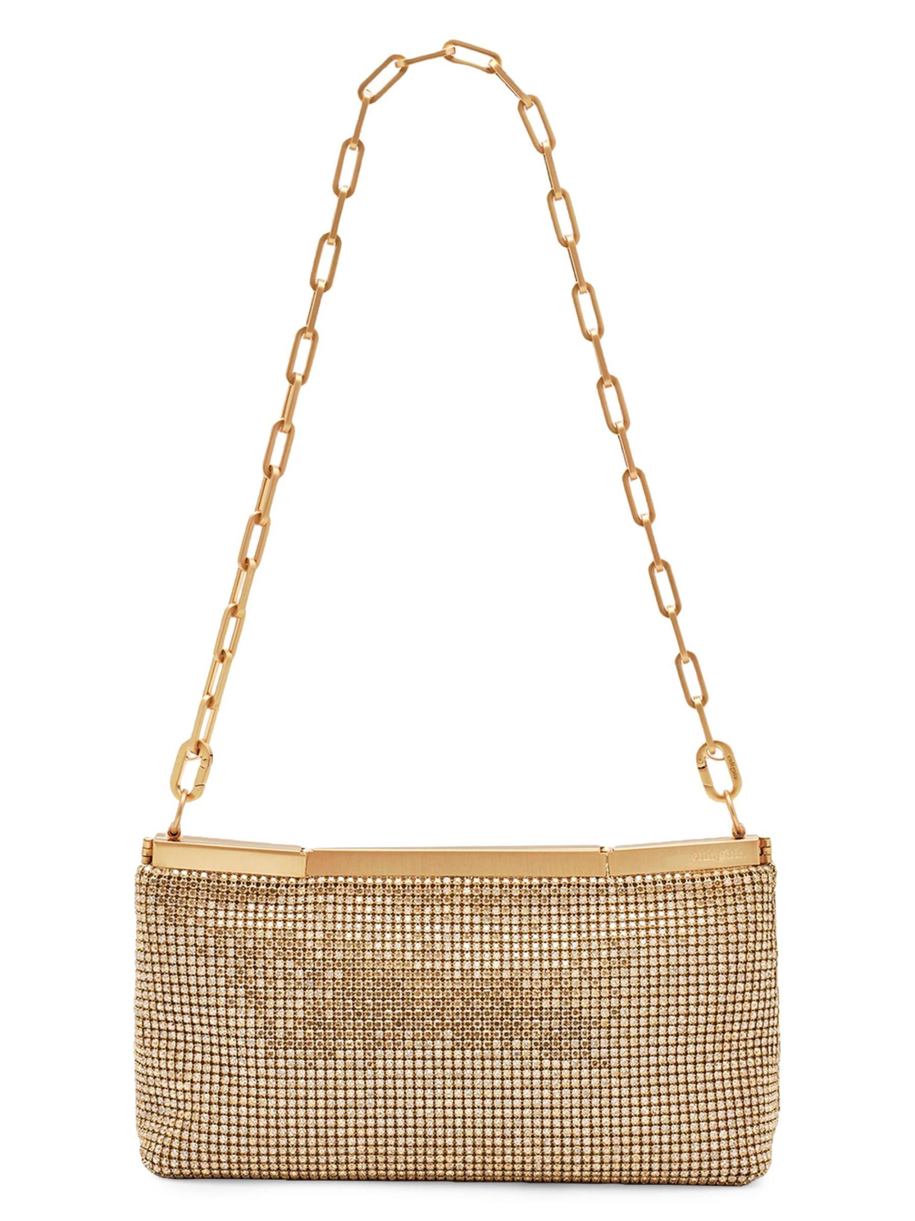حقيبة Felice هذه من Cult Gaia مصنوعة من الكريستال الزجاجي اللامع باللون الذهبي وتتميز بحزام كتف على شكل سلسلة قابلة للإزالة.