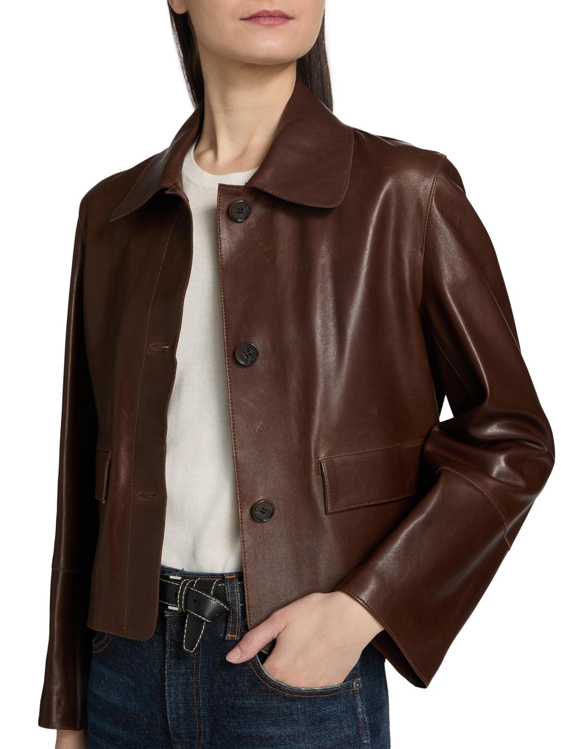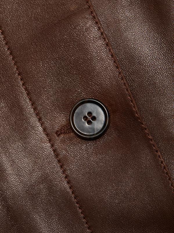 صُممت سترة Arma's Fem بلمسة نهائية راقية مستوحاة من الطراز القديم، وهي مصنوعة من الجلد الناعم ومزينة بياقة نظيفة ومزينة بمقاس عادي.
