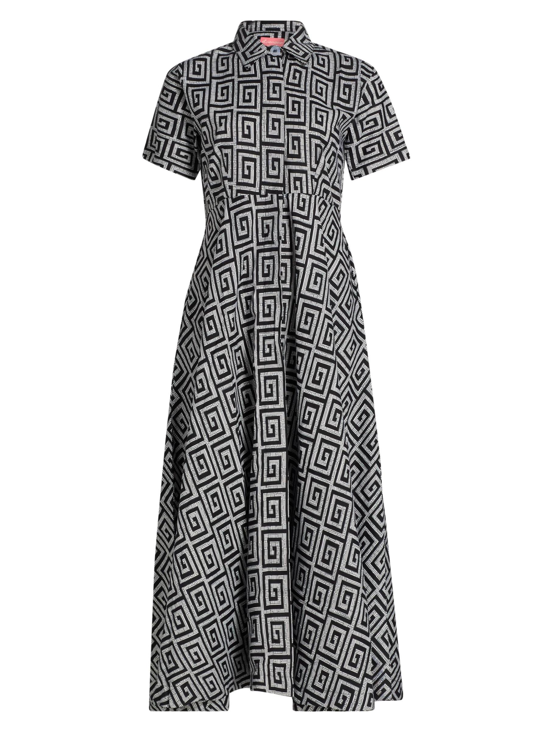 يتميز هذا الفستان الطويل ذو الشكل الهرمي من Feyi بأكمام قصيرة من Elisamama، والمصنوع من القطن، بطبعة هندسية وجيوب جانبية منزلقة وياقة واسعة.طوق سبريد أكمام قصيرة جيوب جانبية منزلقة إغلاق بأزرار أمامية قطن بنسبة 100% يُغسل في الغسالة مستوردة