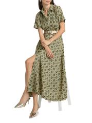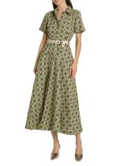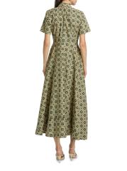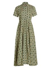 صُمم فستان ماكسي بطبعة Feyi من Elisamama من القطن القابل للتنفس، وهو عبارة عن تصميم مُعاد تصميمه على شكل قميص كلاسيكي. يتميز هذا التصميم بياقة مدببة حادة وجيوب جانبية وإغلاق بأزرار أمامية.