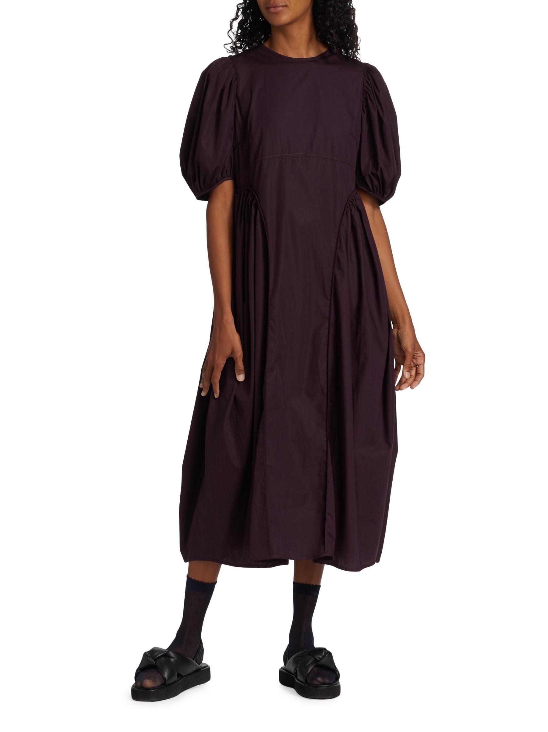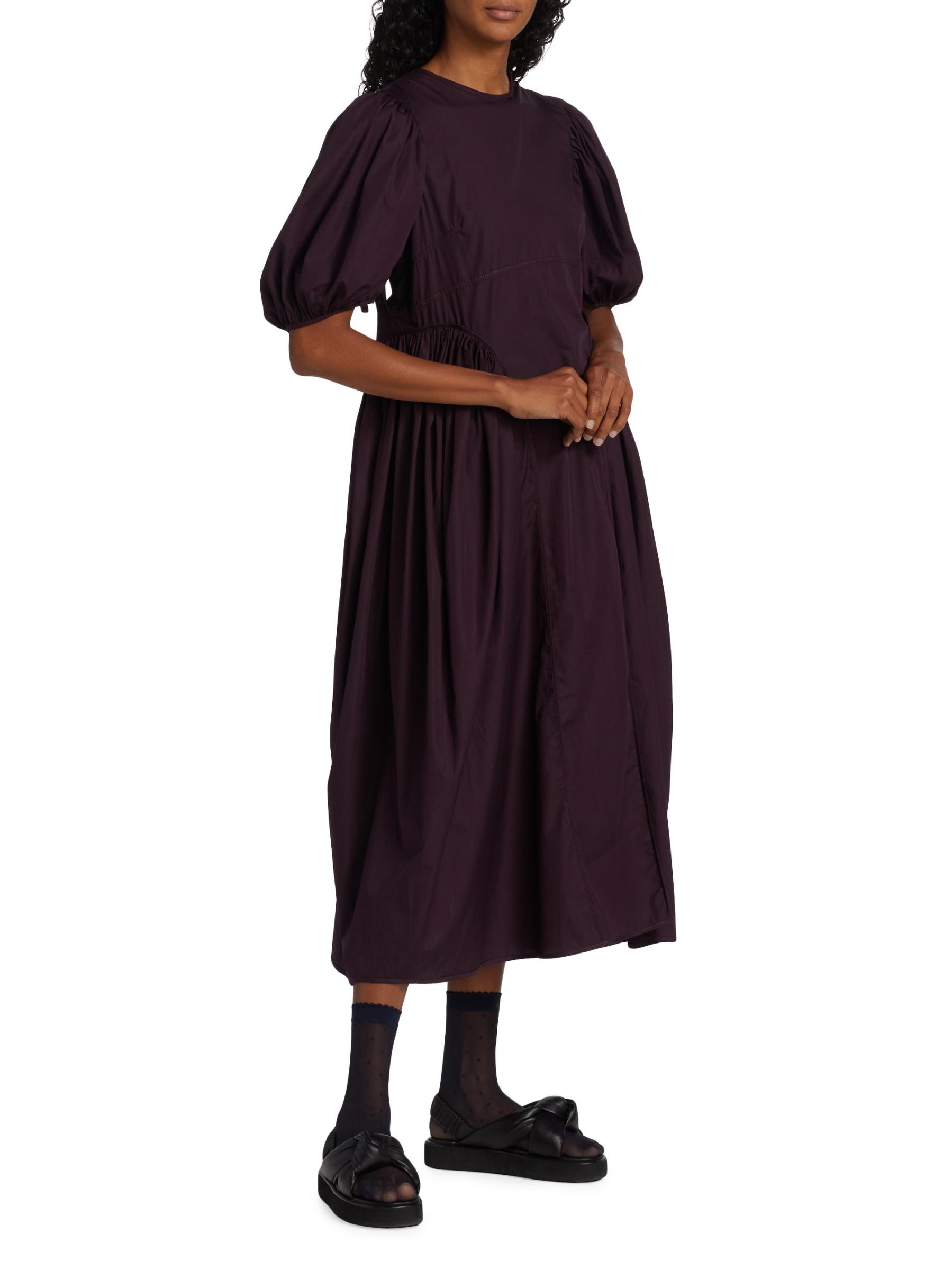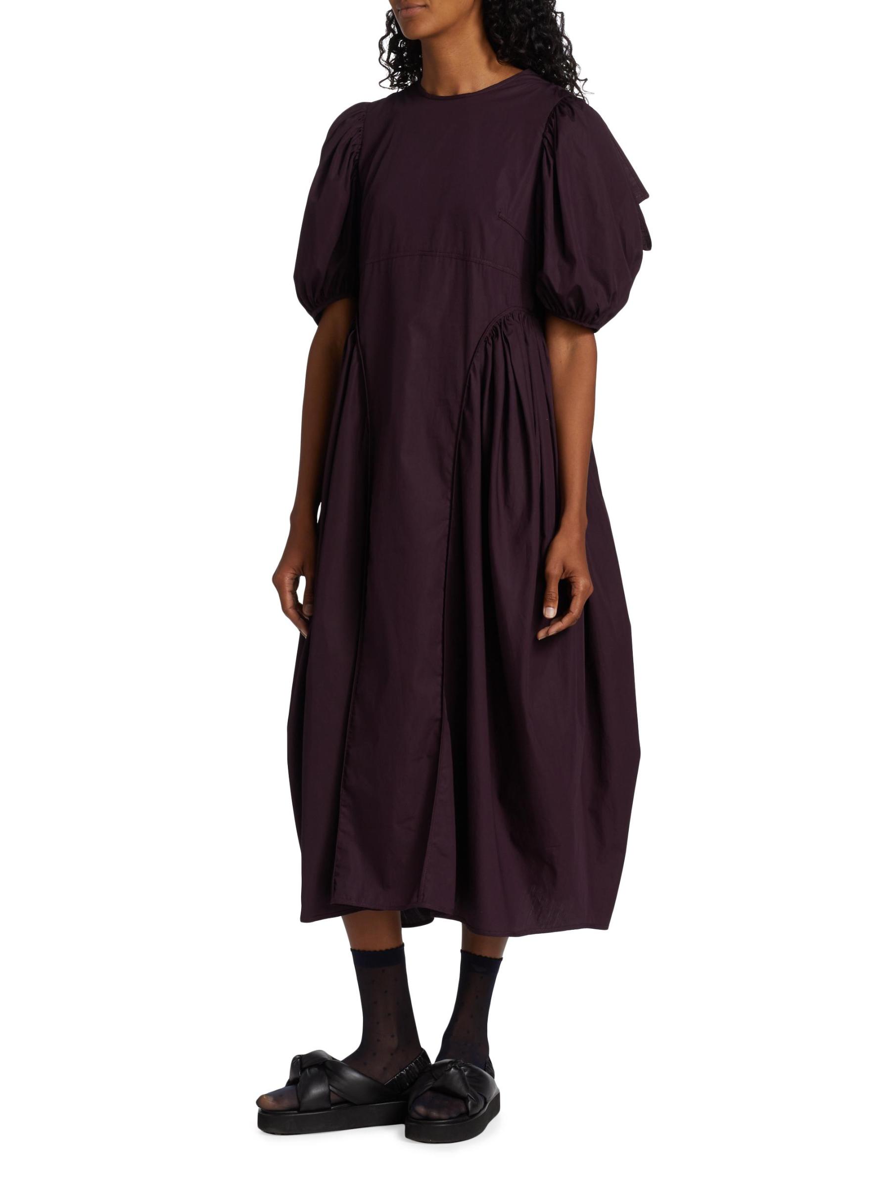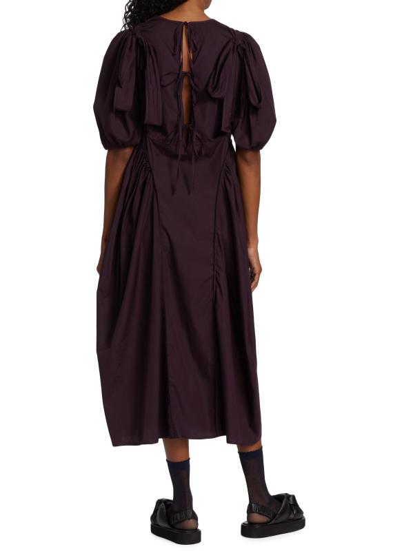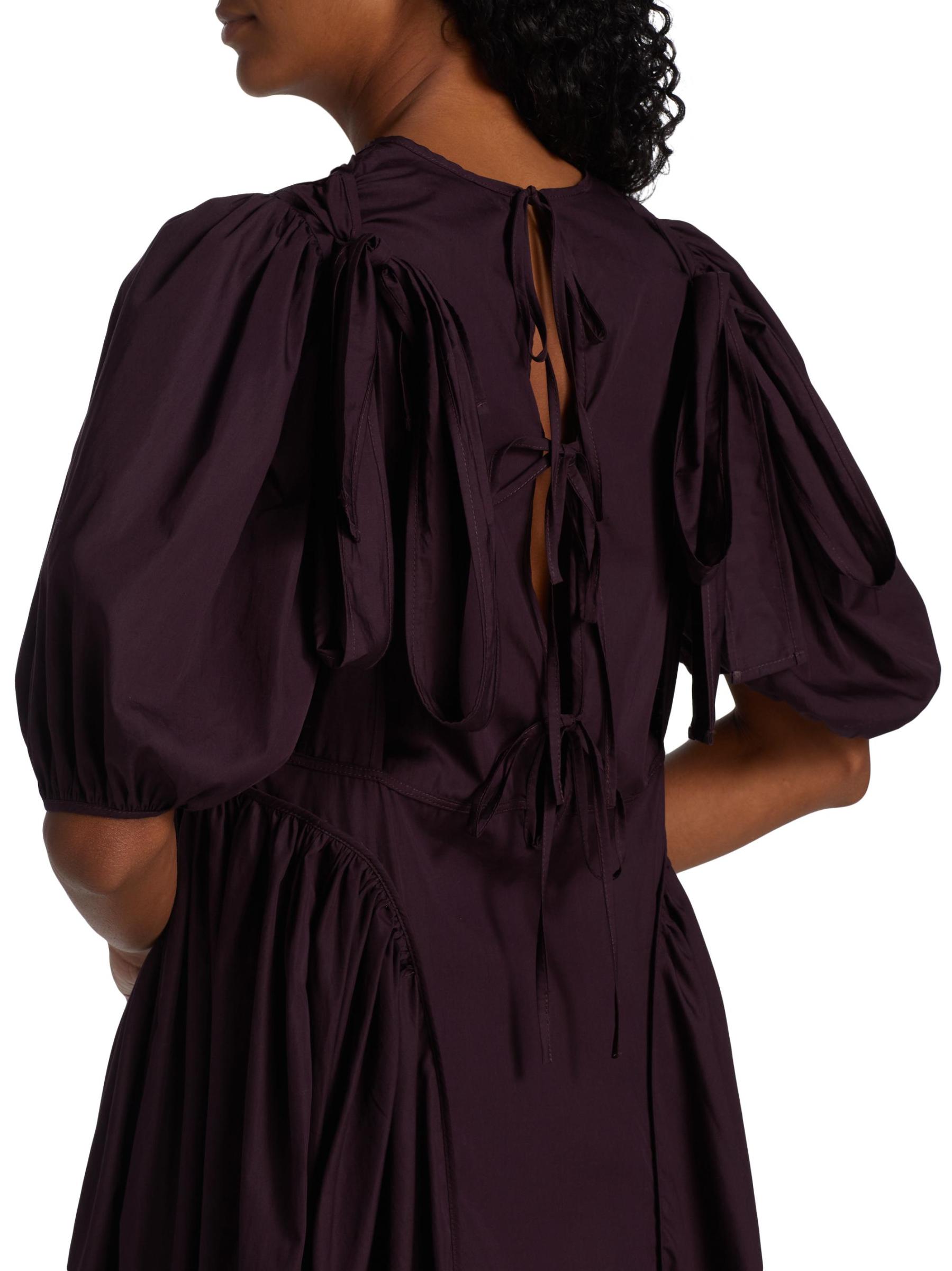هذا الفستان متوسط الطول من Finnegan من Cecille Bahsen مصنوع من القطن الخفيف. يتميز هذا الطراز المزين بأكمام منفوخة بظهر مفتوح وأقواس عند الكتفين الخلفيين.