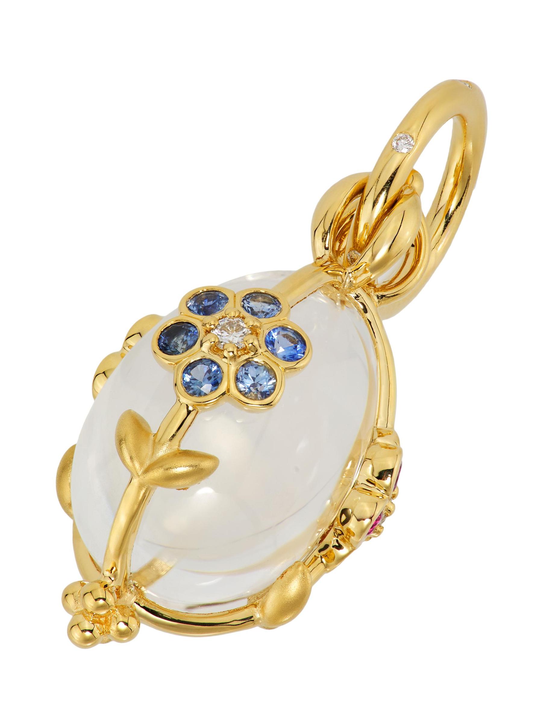 من مجموعة فيوري. تتميز هذه التميمة من تمبل سانت كلير بكريستال صخري بيضاوي داخل قفص من الذهب الأصفر عيار 18 قيراطًا مع زخارف نباتية ساحرة. تضيف الأحجار الكريمة المختلطة بريقًا نابضًا بالحياة إلى هذا الإكسسوار المذهل.