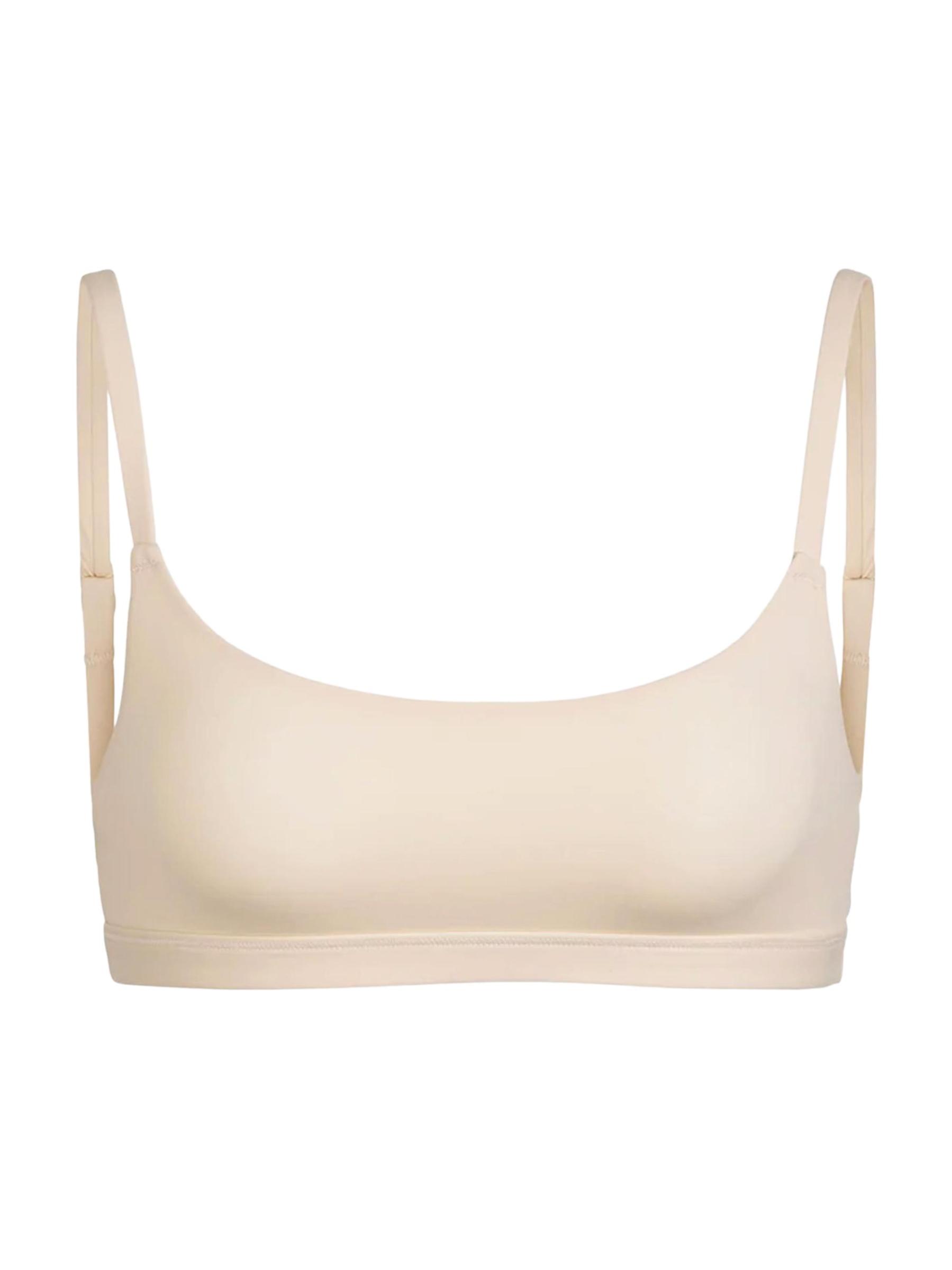 SKIMS هي علامة تجارية موجهة نحو الحلول تخلق الجيل القادم من الملابس الداخلية وملابس النوم وملابس الجسم. تتمدد مجموعة Fits Everybody Collection حتى ضعف حجمها، وتتوافق مع الشكل في نسيج ناعم الملمس. حمالة الصدر هذه القابلة للتمدد والمصنوعة من البلوفر تتناسب مع الصدر وتدعمه بملمس خفيف ومريح. تصميم الجلد الثاني يمنع الحفر ويضمن مظهرًا سلسًا تحت الملابس.