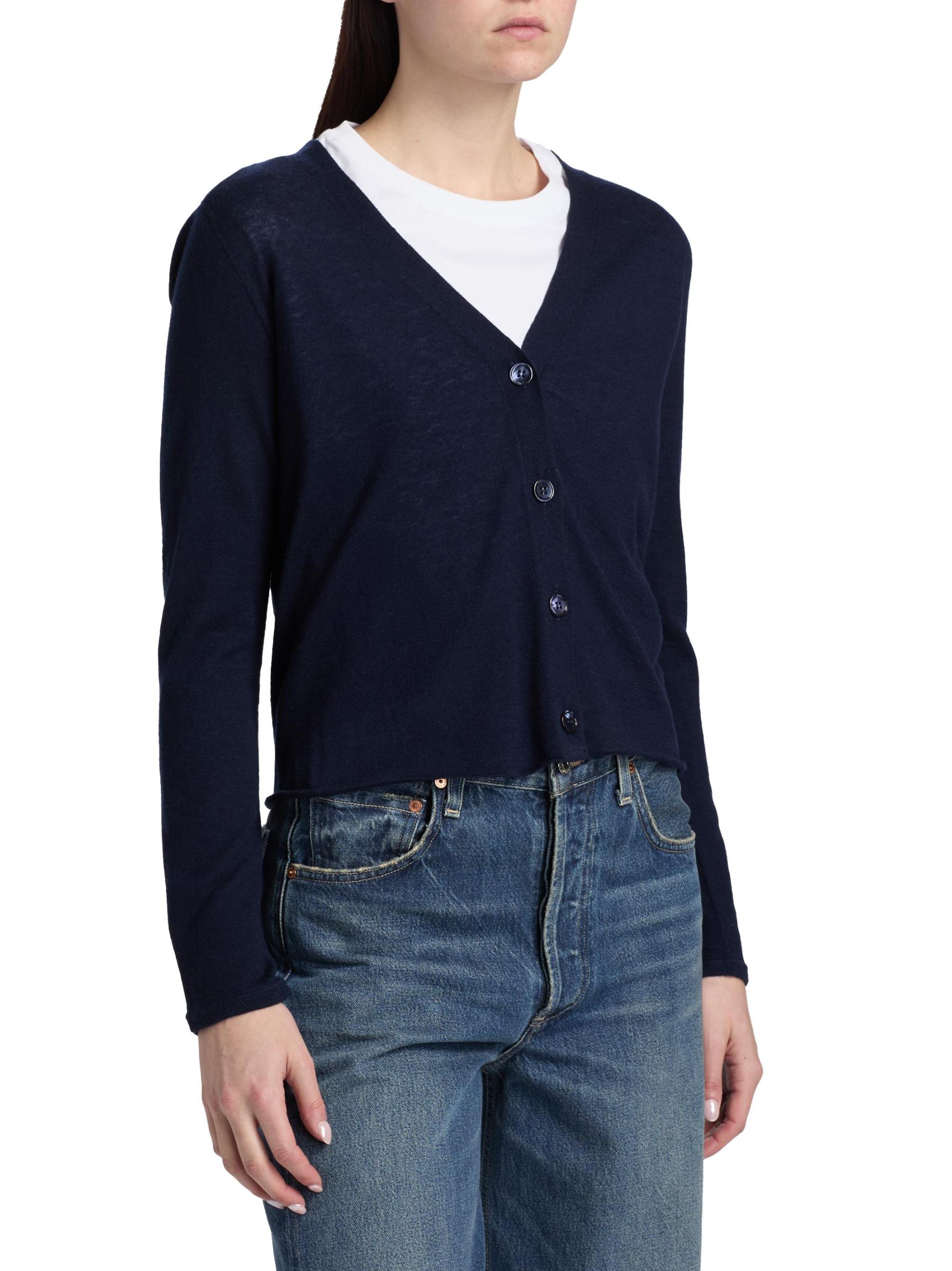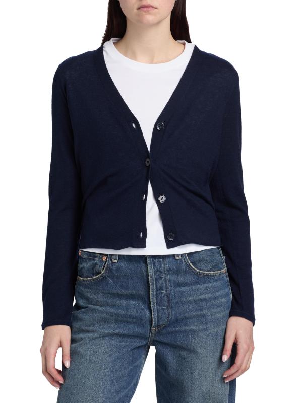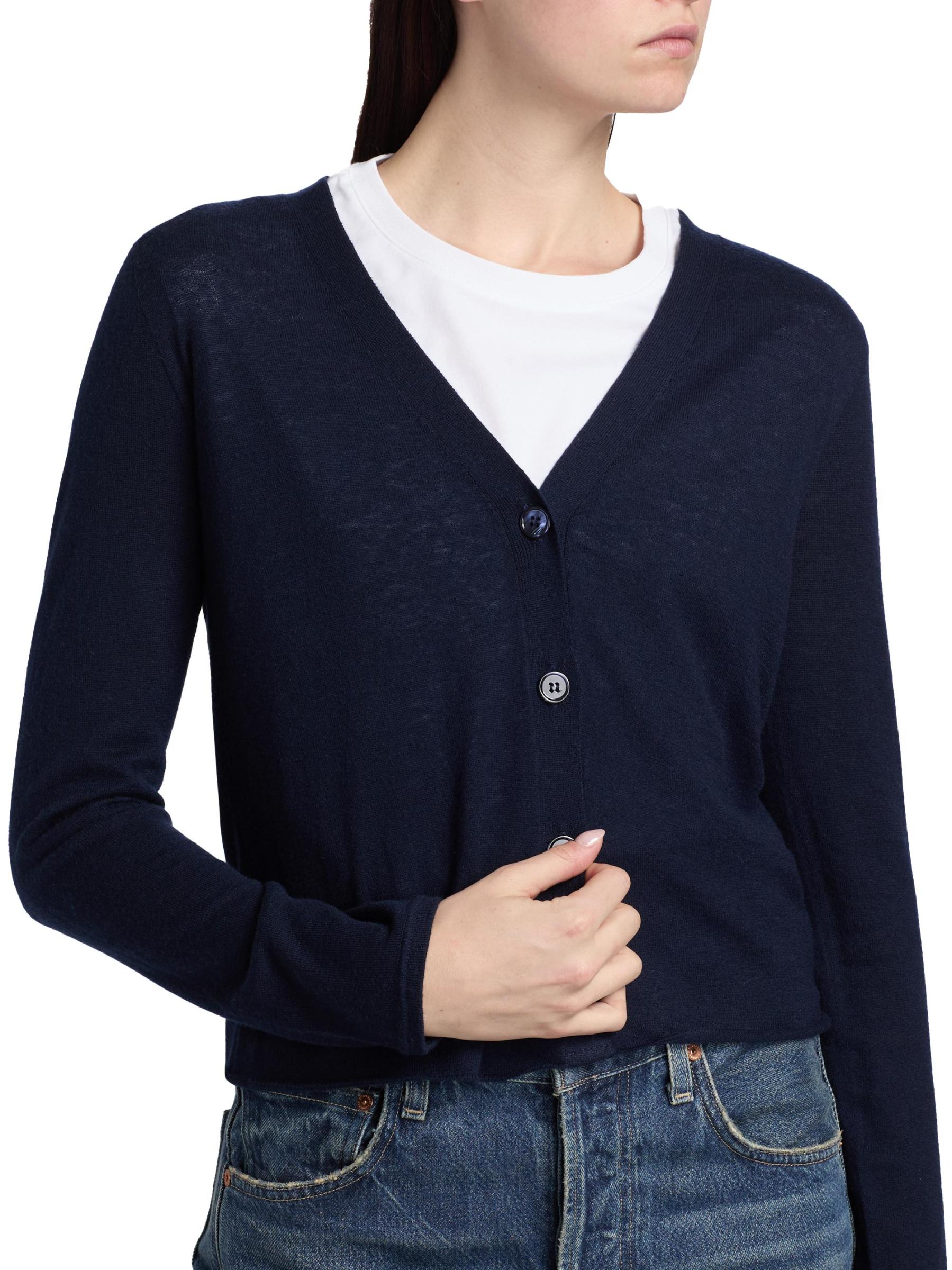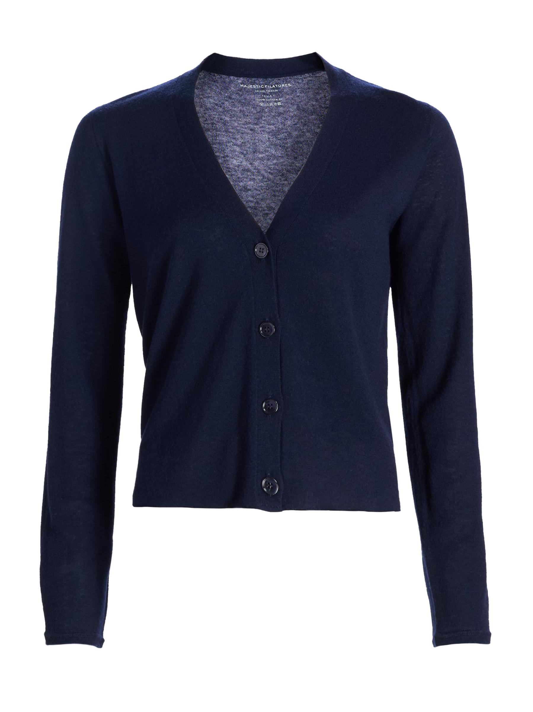 يتميز كارديجان Majestic Filatures بتقويرة حادة على شكل حرف V وأكمام طويلة وإغلاق بأزرار أمامية.