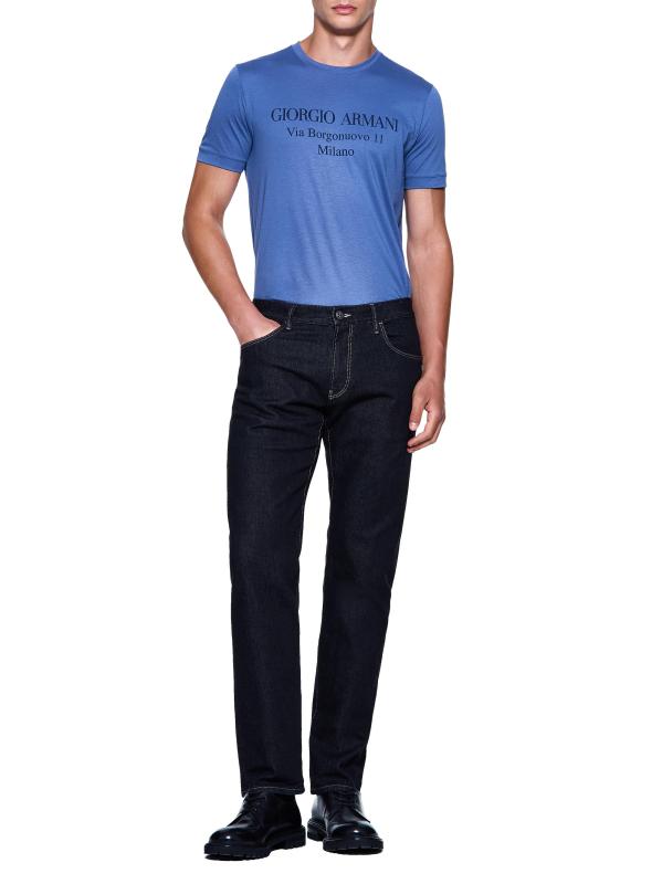 يتميز هذا الجينز من جورجيو أرماني، المصنوع من قماش الدنيم القطني المرن، بتصميم كلاسيكي بخمسة جيوب. تم تصميم هذا الزوج في شكل نحيف مستقيم الساق وتم تشطيبه بعلامة جلدية للحصول على لمسة مميزة.طراز بخمسة جيوب سحّاب، زر للإغلاق 86% قطن/ 13% مودال/1% إليستين الزخرفة: 100% جلد تنظيف جاف صُنع في إيطاليا