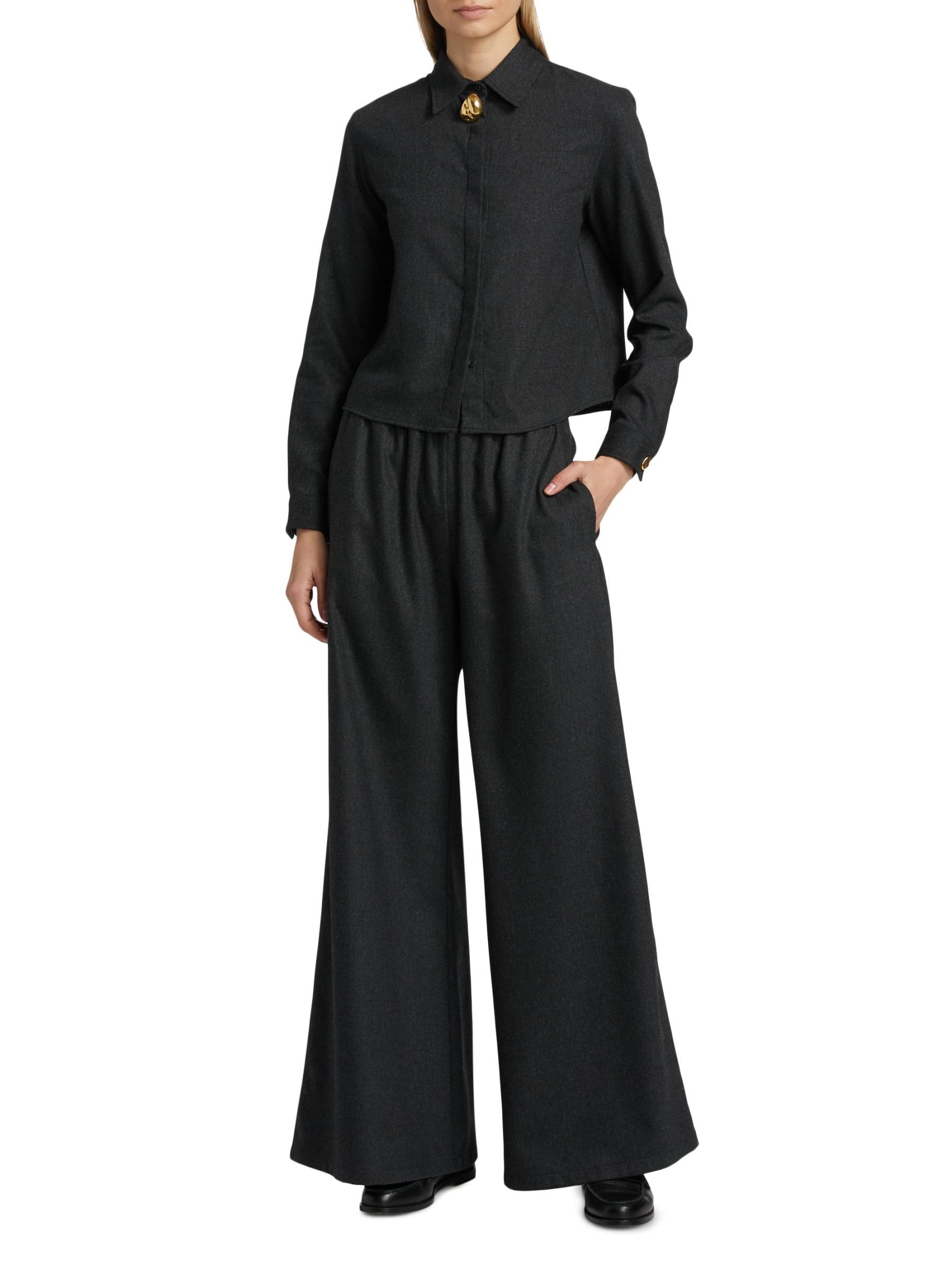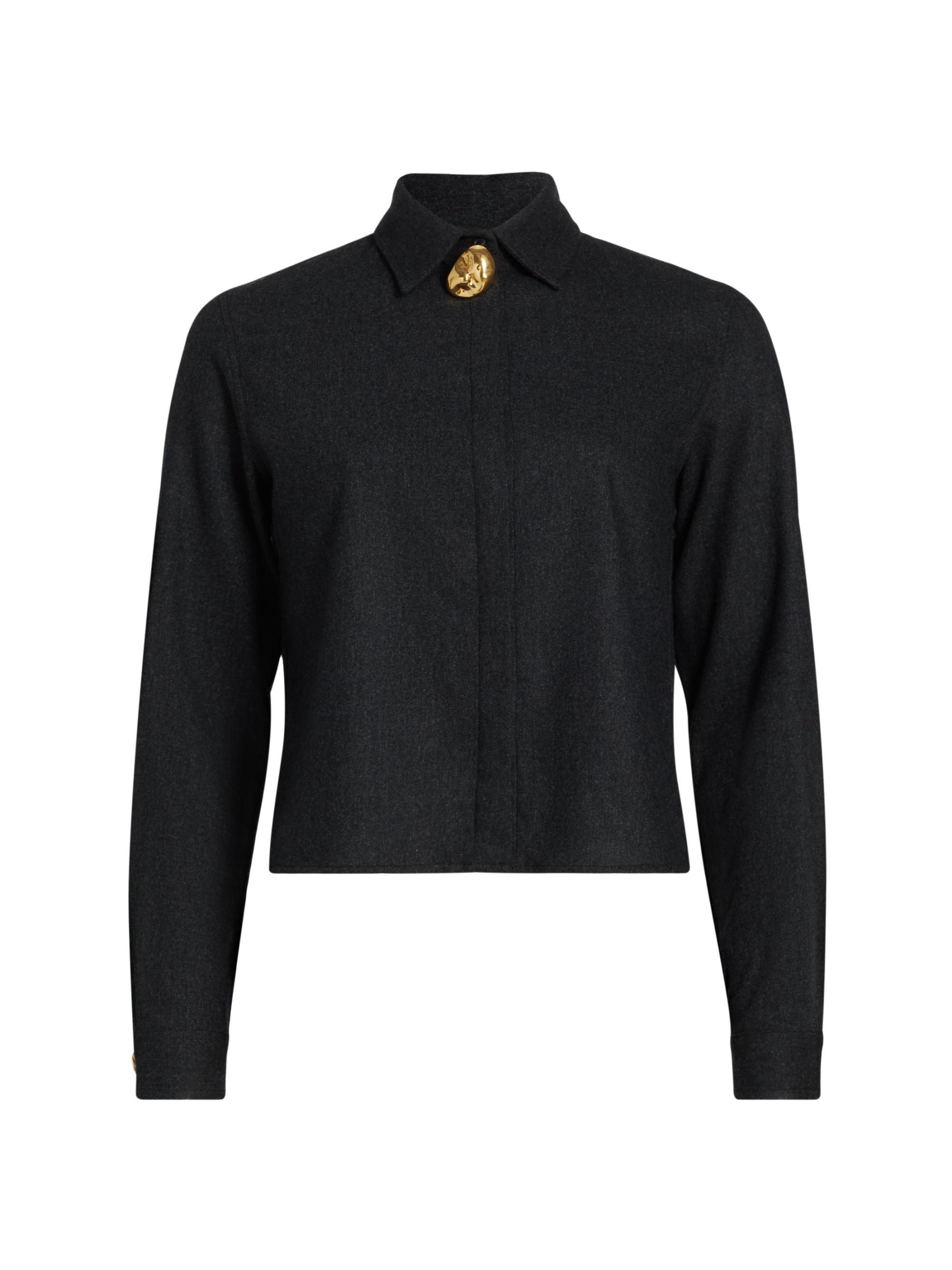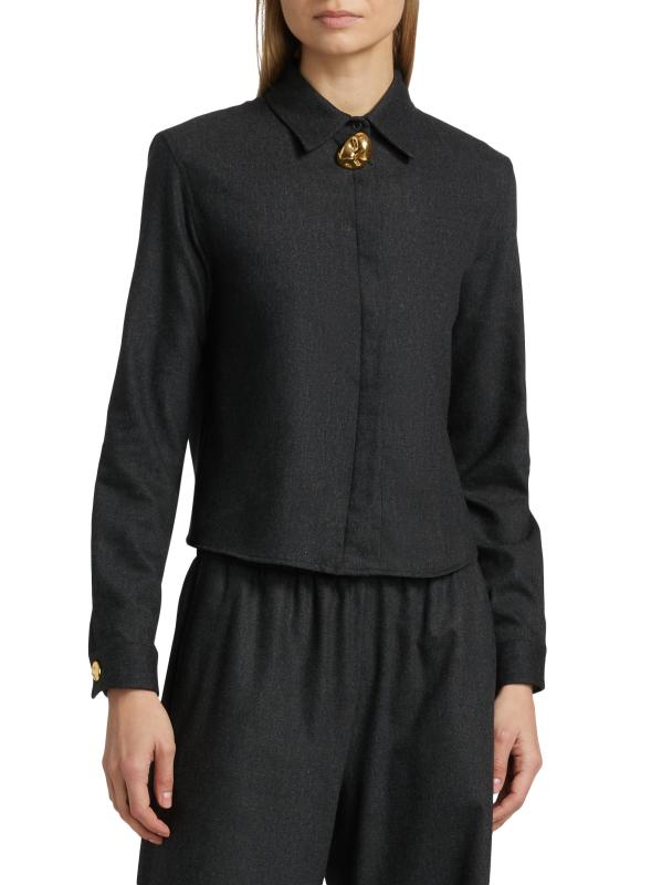 يتميز قميص Fabiana Filippi المصنوع من الفلانيلبوكسيت بتفاصيل ذهبية اللون في الأمام ومصنوع من الصوف المرن.