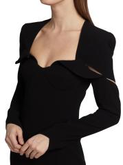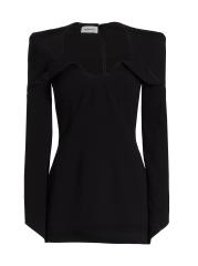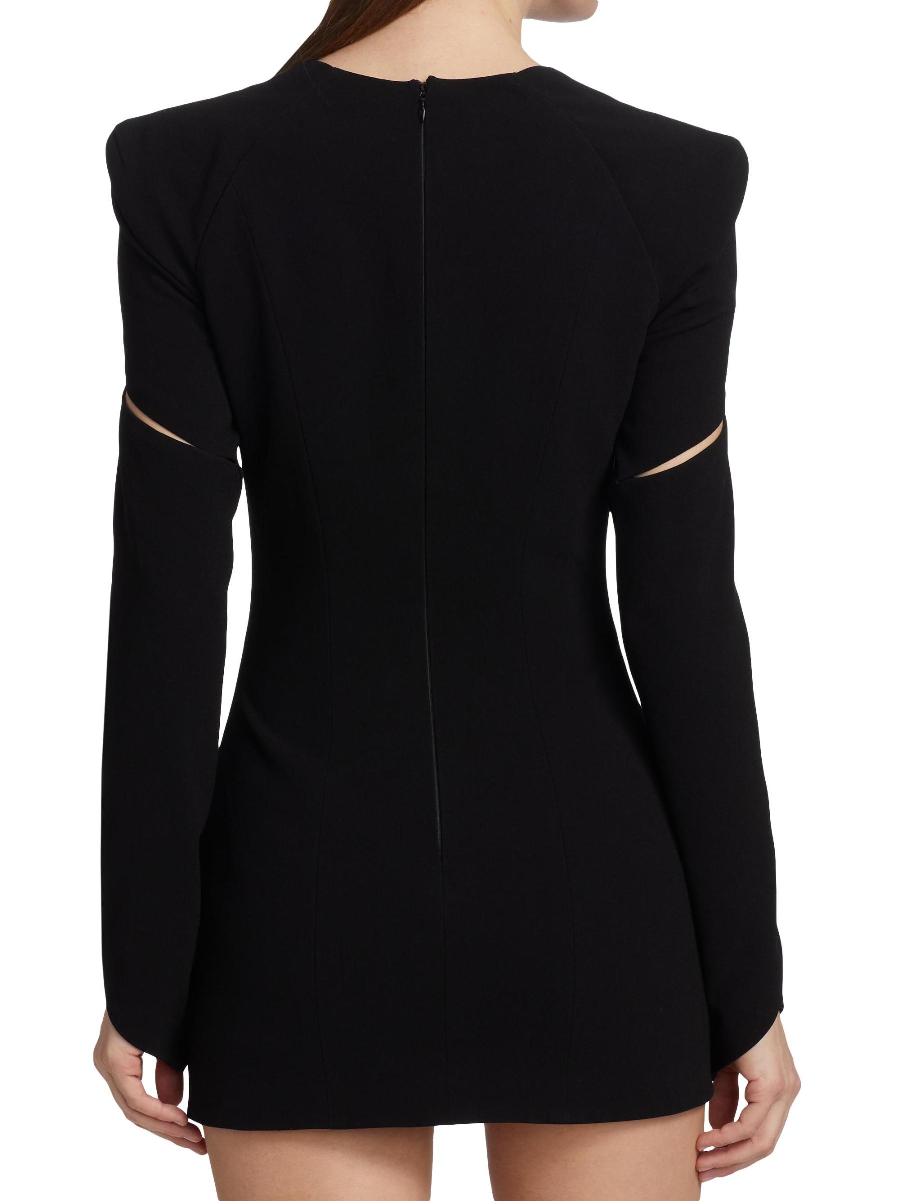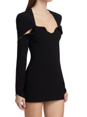 يستمد المصمم اللبناني إيلي مزراحي الإلهام من الهندسة المعمارية البسيطة باستخدام خطوط نظيفة وأشكال دقيقة مقترنة بعناية بتفاصيل مقطوعة وعناصر خافتة لإنشاء مجموعاته المميزة. يتميز هذا الفستان القصير الأنيق برقبة على شكل قلب مع تفاصيل قابلة للطي.رقبة على شكل قلب أكمام طويلة إغلاق بسحّاب خلفي 82% ترياسيتات/12% بوليستر/ 6% فيسكوز تنظيف جاف صُنع في الولايات المتحدة الأمريكية من قماش إسباني