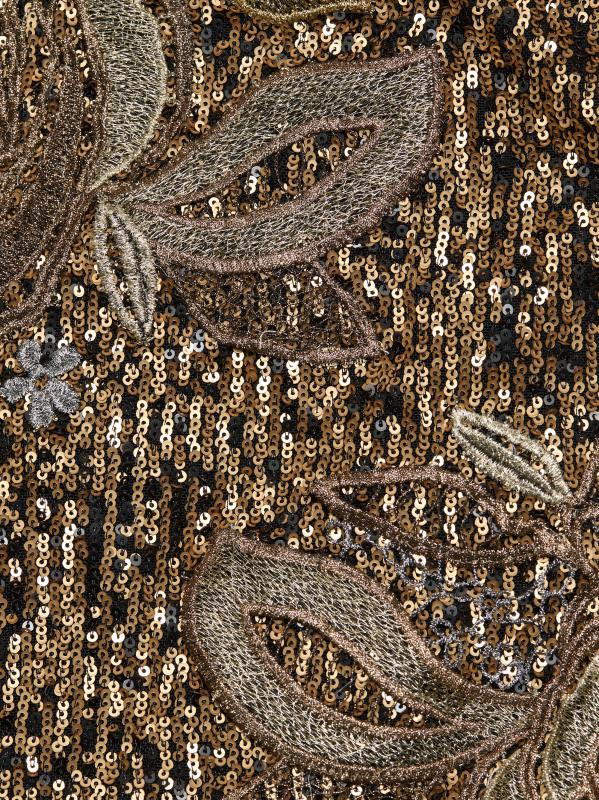 فستان برقبة رسن مطرز بالزهور ومزين بالترتر