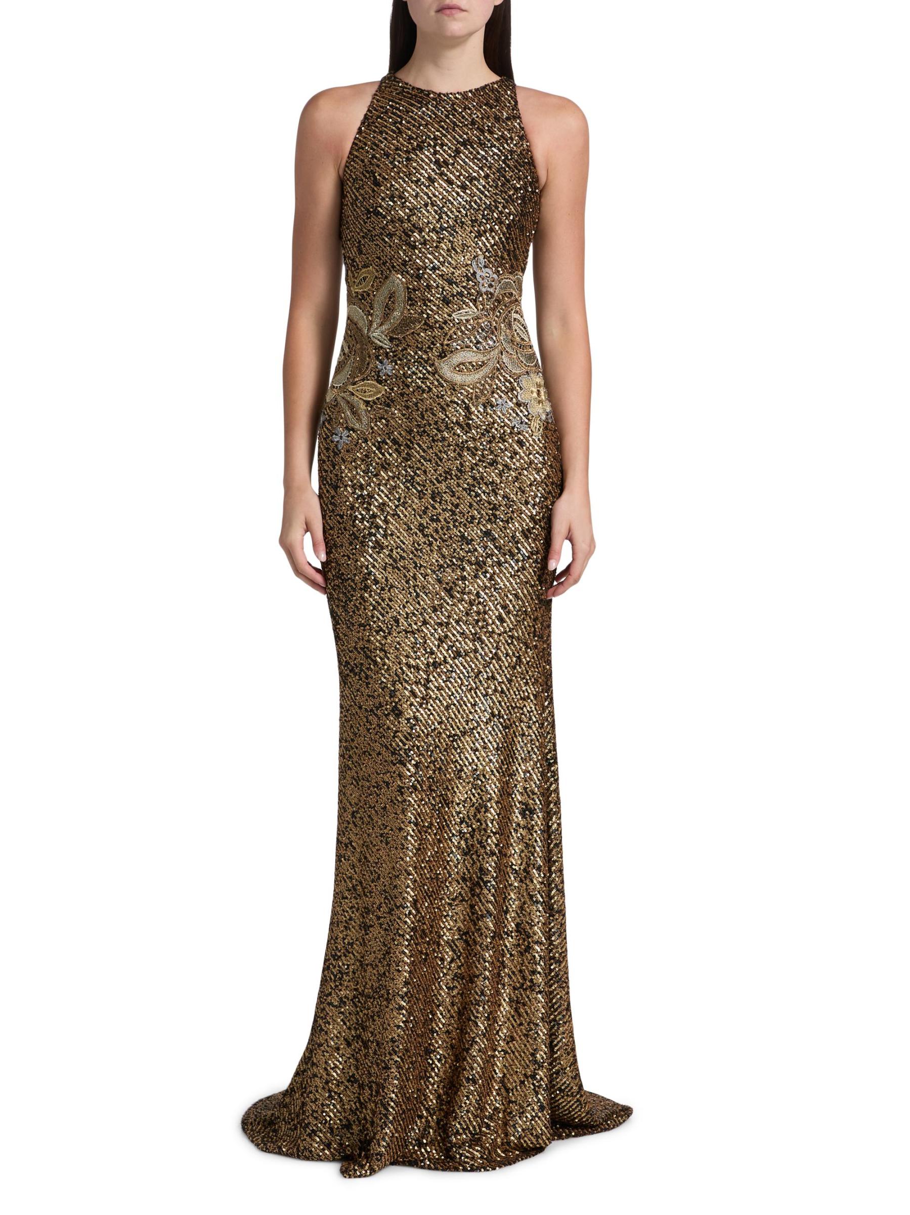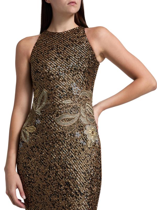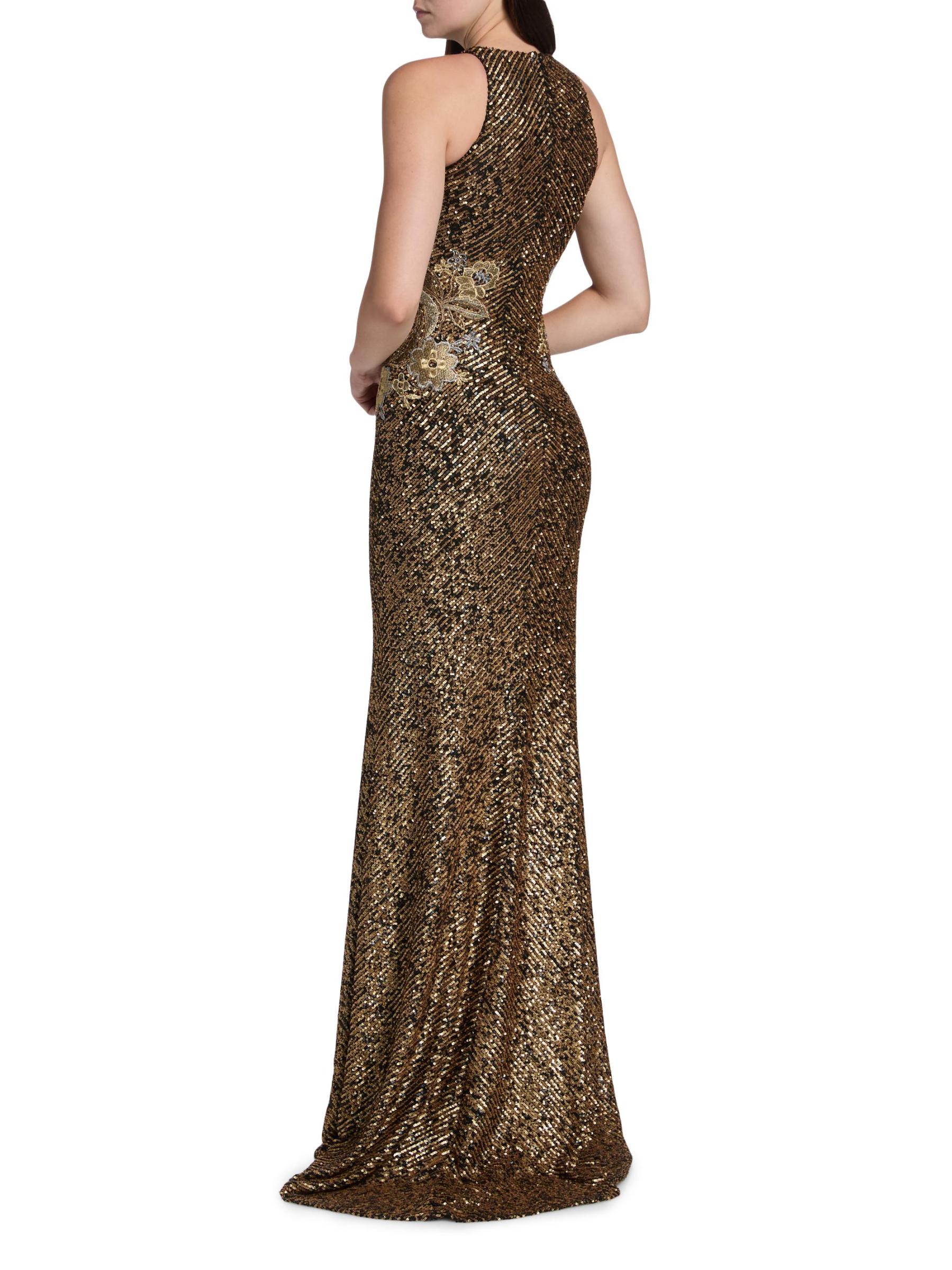 يتميّز هذا الفستان ذو الرقبة الرسن من نعيم خان، المصنوع من قماش الترتر القابل للتمدد، بتطريزات زهرية عند الخصر.رقبة هالتيرنك بدون أكمام إغلاق بسحّاب خلفي 95% نايلون/ 5% إليستين تنظيف البقع صُنع في الولايات المتحدة الأمريكية