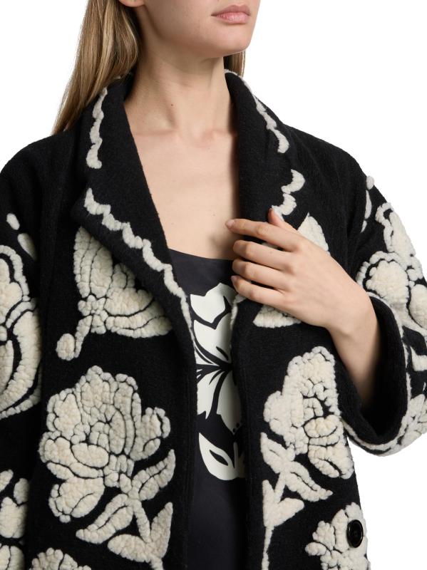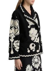 معطف بأزرار واحدة من صوف الأرابيسك الزهري