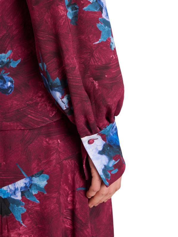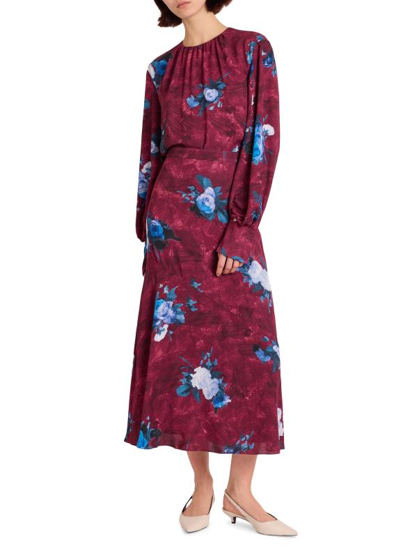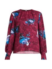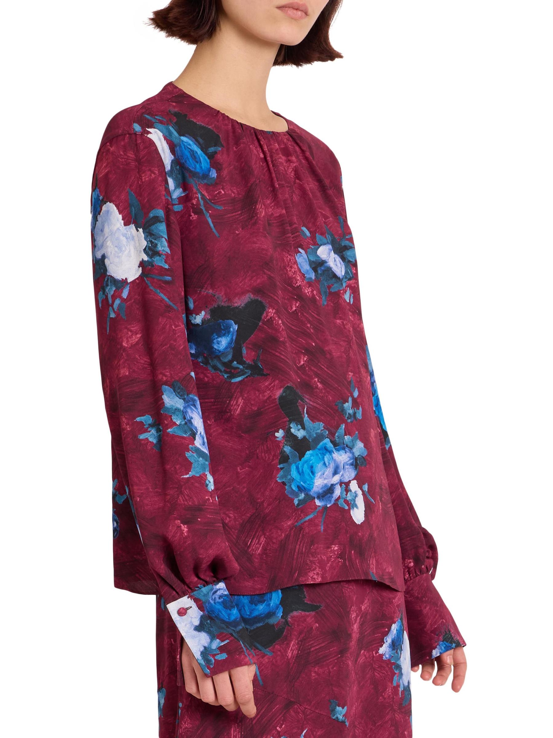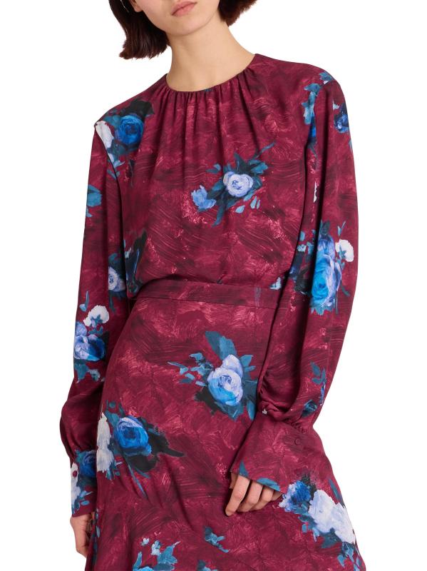 تم تصميم هذه البلوزة الزهرية من Erdem بتجمع عند الرقبة وأكمام مطرزة طويلة وأساور بأزرار.