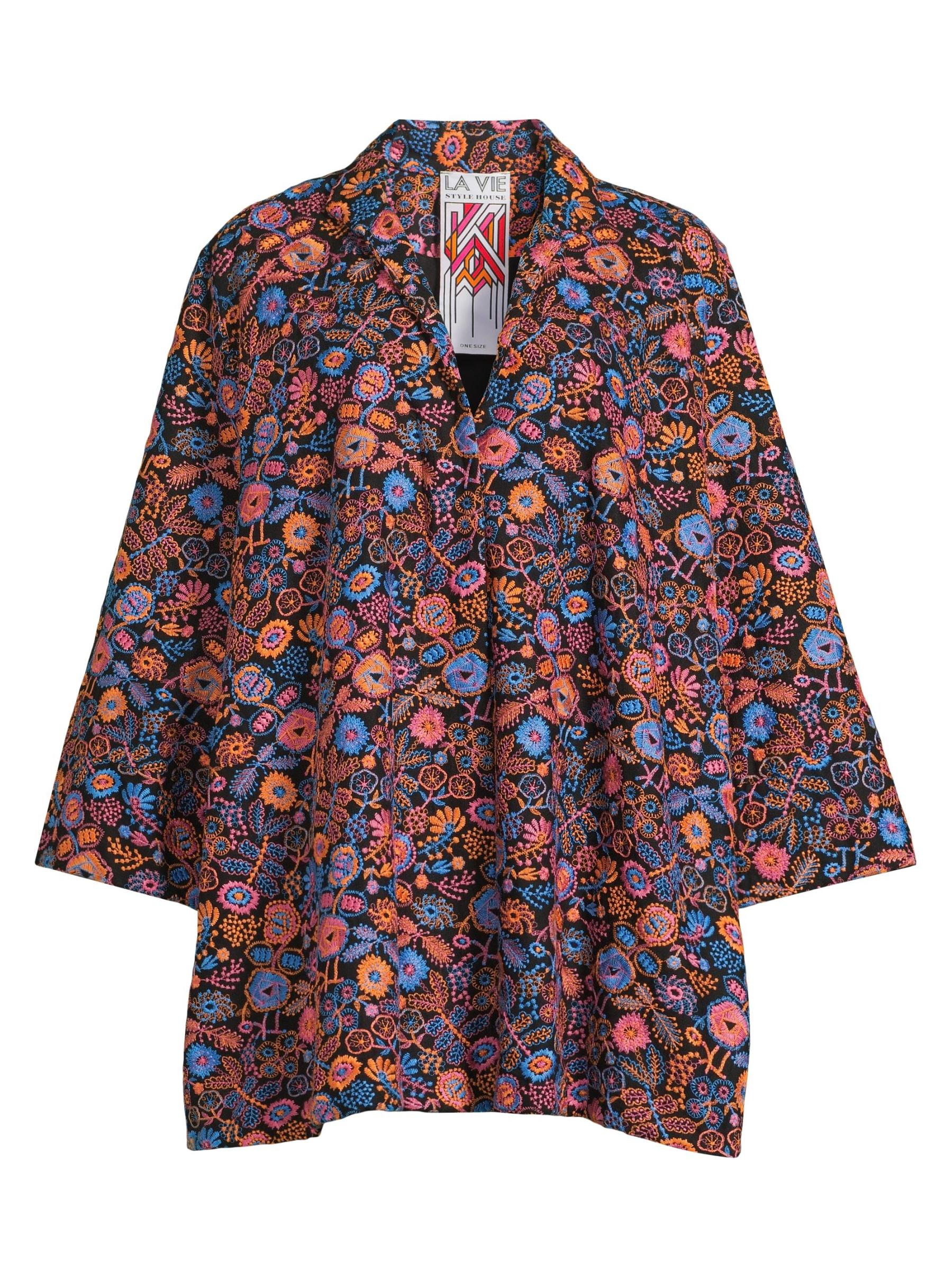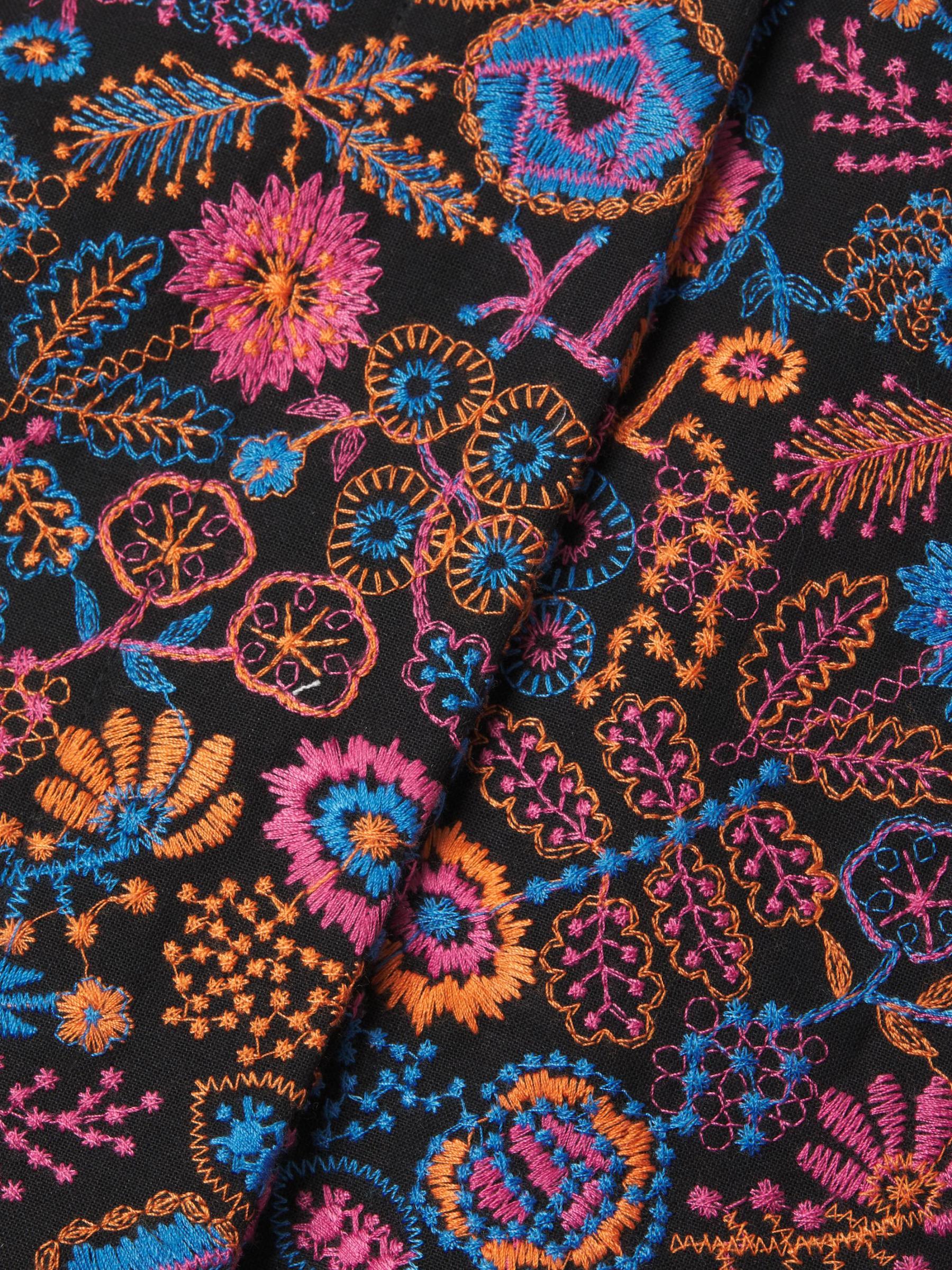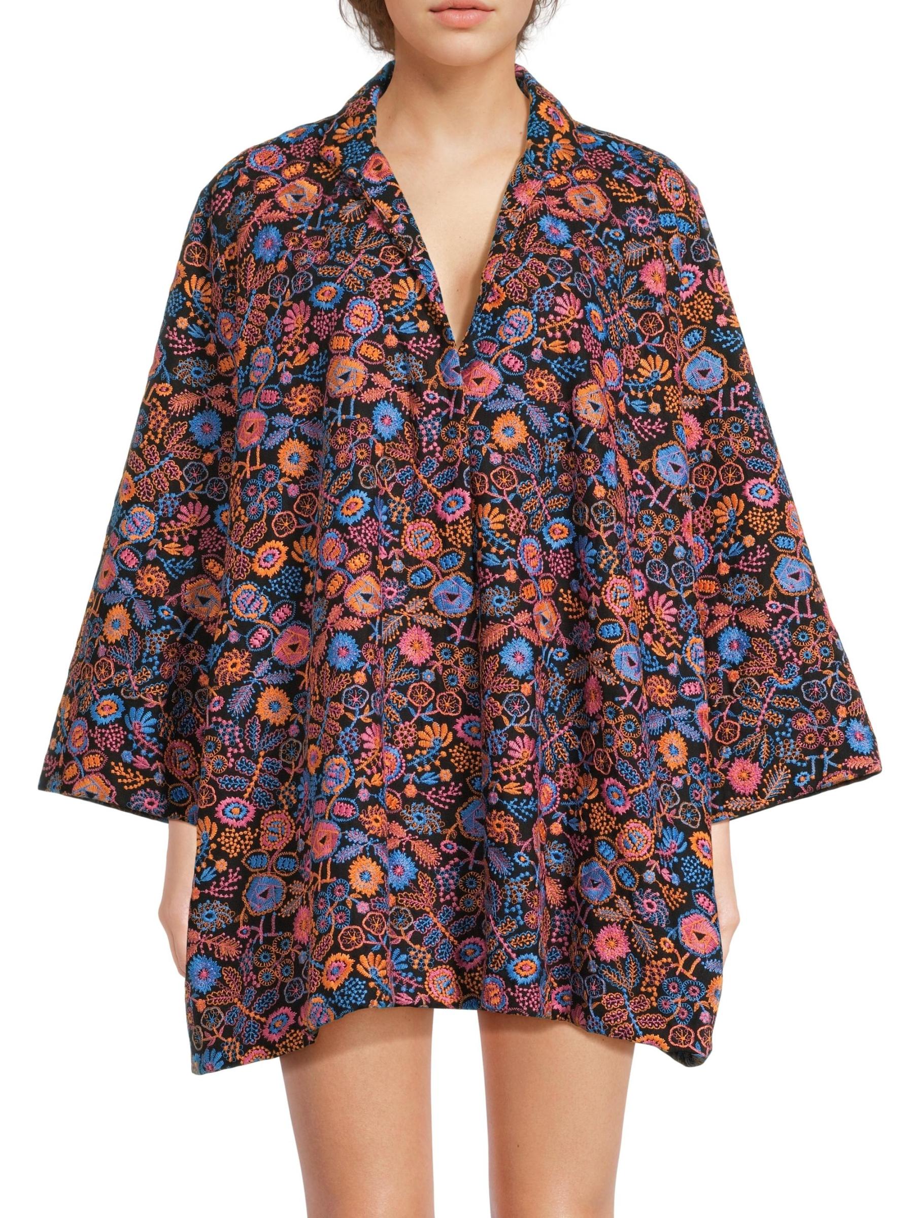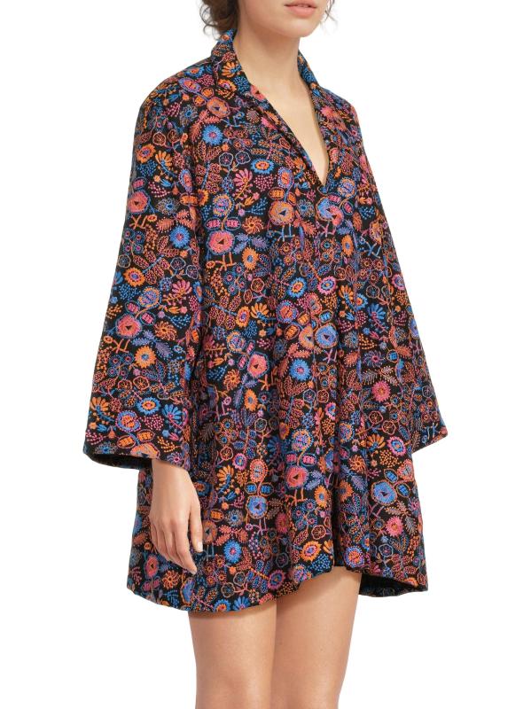صُمم هذا الفستان القصير من La Vie Style House بقصة كبيرة، ويتميز بتطريز الأزهار الملونة، وأكمام بطول السوار، وإغلاق بأزرار أمامية لمزيد من الأناقة.