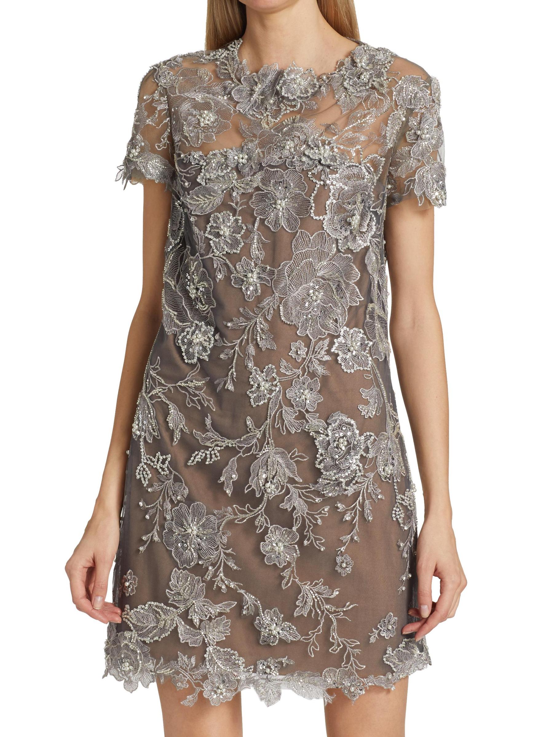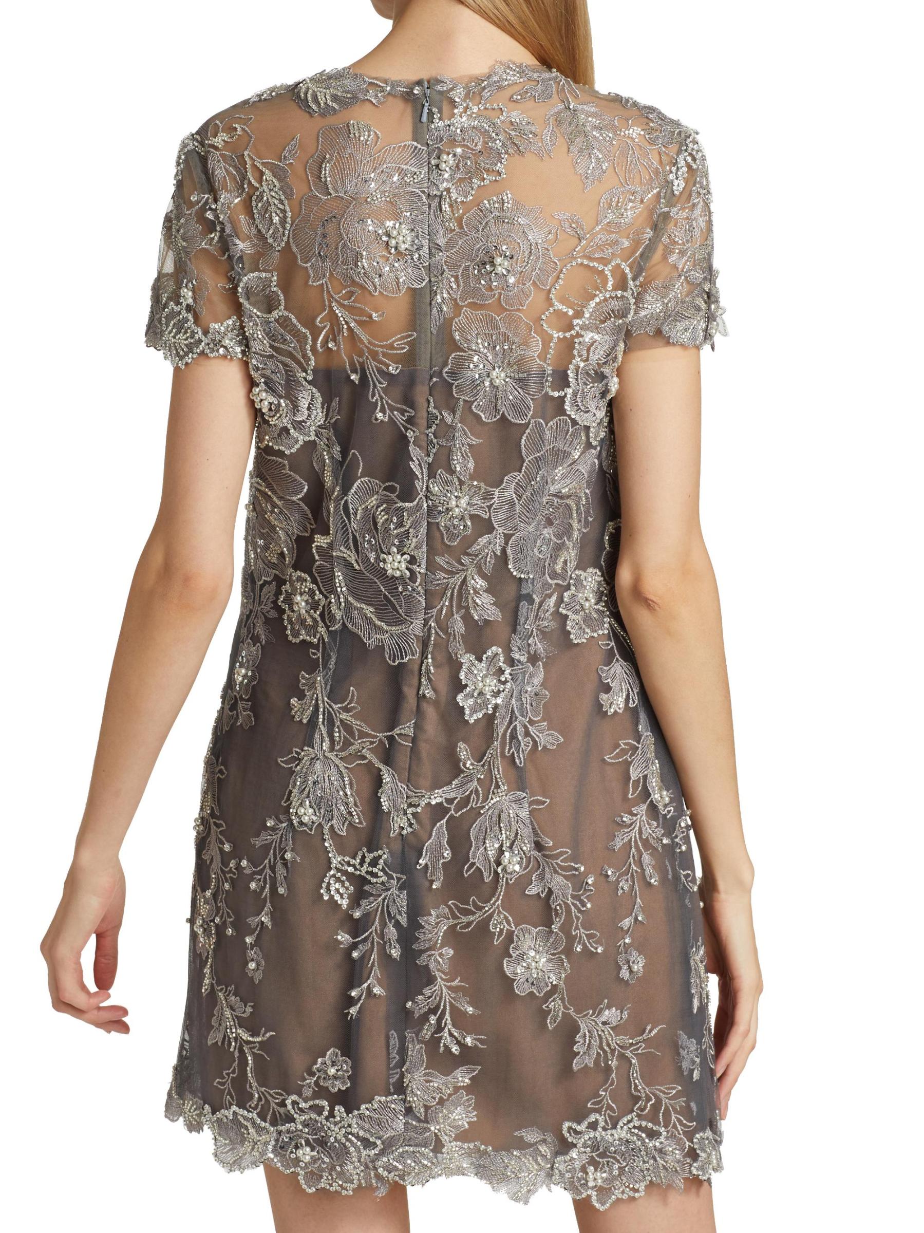 يتميز هذا الفستان الكلاسيكي ذو التصميم البسيط بتقويرة دائرية وأكمام قصيرة معززة بزخارف رومانسية من الزهور المطرزة.رقبة مستديرة أكمام قصيرة إغلاق بسحّاب خلفي 100٪ نايلون البطانة: 100% بوليستر تنظيف البقع صُنع في الولايات المتحدة الأمريكية من مواد مستوردة
