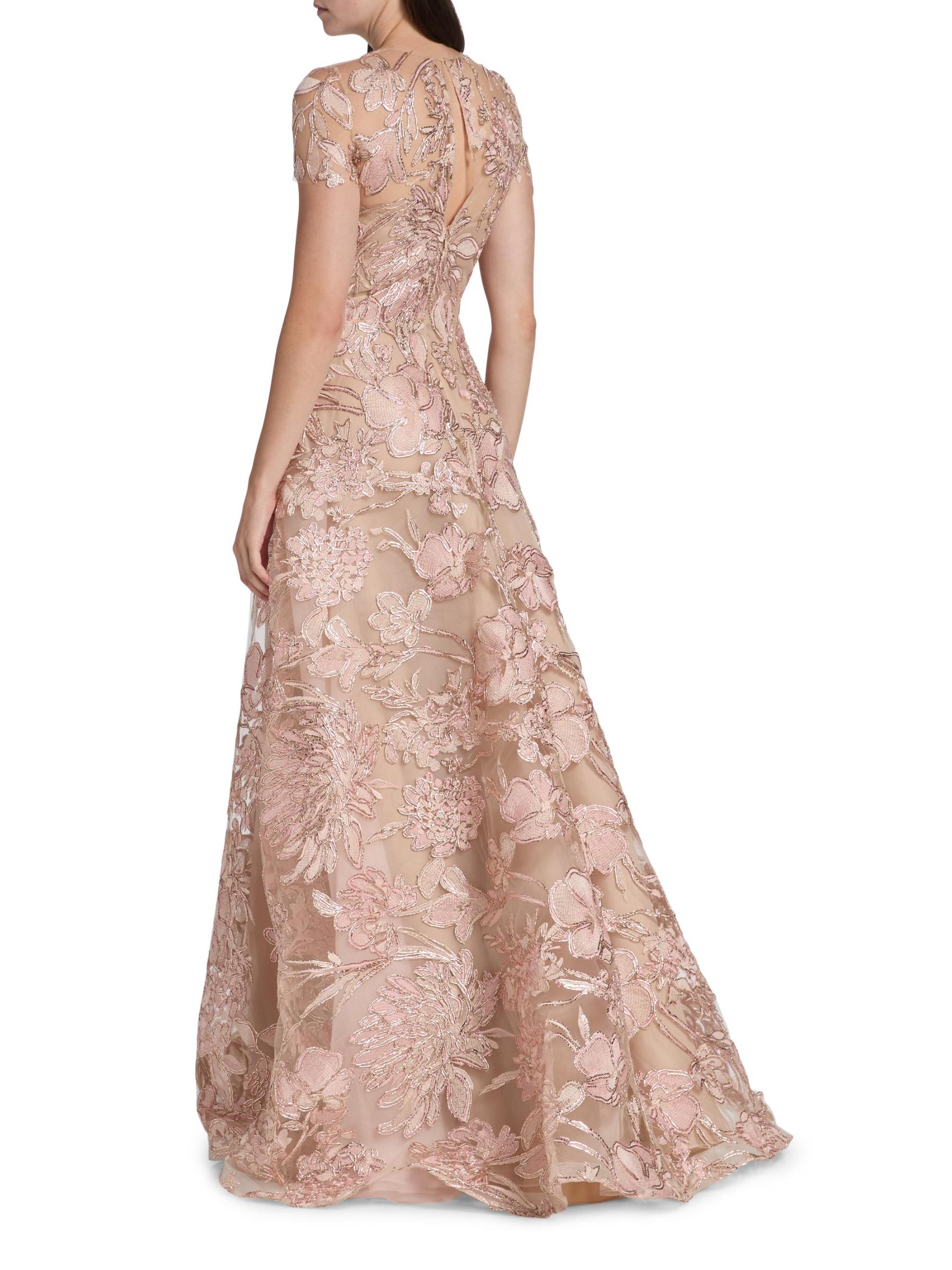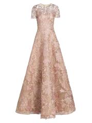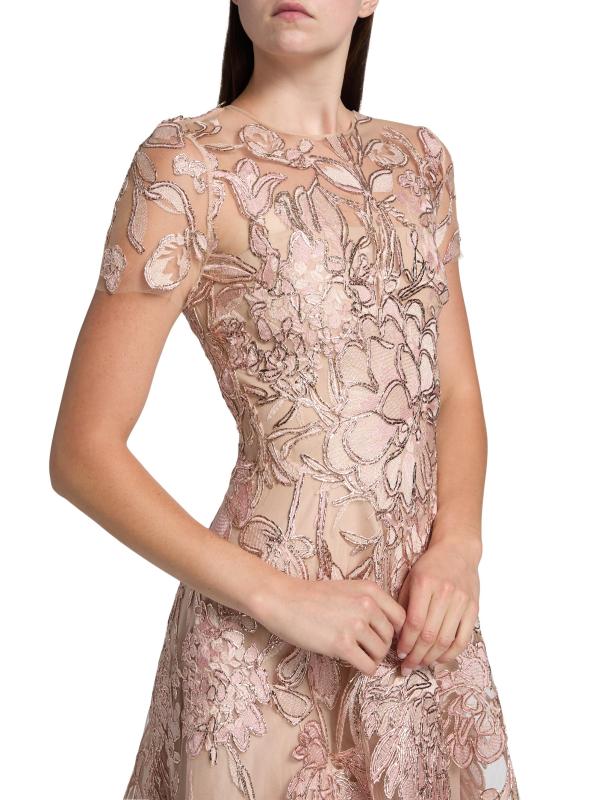 تم تزيين فستان نعيم خان هذا بتطريز الأزهار الرقيق. تكتمل القطعة بتنورة كاملة وواسعة وياقة مستديرة وأكمام قصيرة.رقبة مستديرة أكمام قصيرة فتحة المفتاح الخلفية إغلاق بسحّاب خلفي 50% رايون/ 22% بوليستر/ 16% حبل بوليستر/ 12% نايلون تنظيف البقع صُنع في الولايات المتحدة الأمريكية