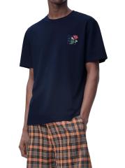تيشيرت LOEWE ذو الرقبة المستديرة مصنوع من مزيج القطن الناعم، وهو مصمم بأكتاف منسدلة وتطريز الأزهار والشعار على الصدر.