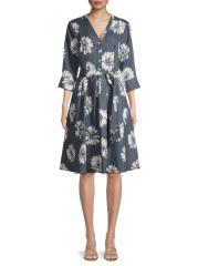 يتميز فستان Rosso35 المتوسط الخفيف المصنوع من الكتان الإيطالي برقبة على شكل حرف V وجيوب جانبية على شكل درزات. تتميز هذه القطعة الساحرة بطبعة زهور رسومية وحزام قابل للربط الذاتي.رقبة على شكل حرف V أكمام بطول ثلاثة أرباع وأساور بأزرار حزام ربط ذاتي جيوب جانبية على درزات إغلاق بسحّاب جانبي مخفي كتان 100% يُغسل في الغسالة صُنع في إيطاليا