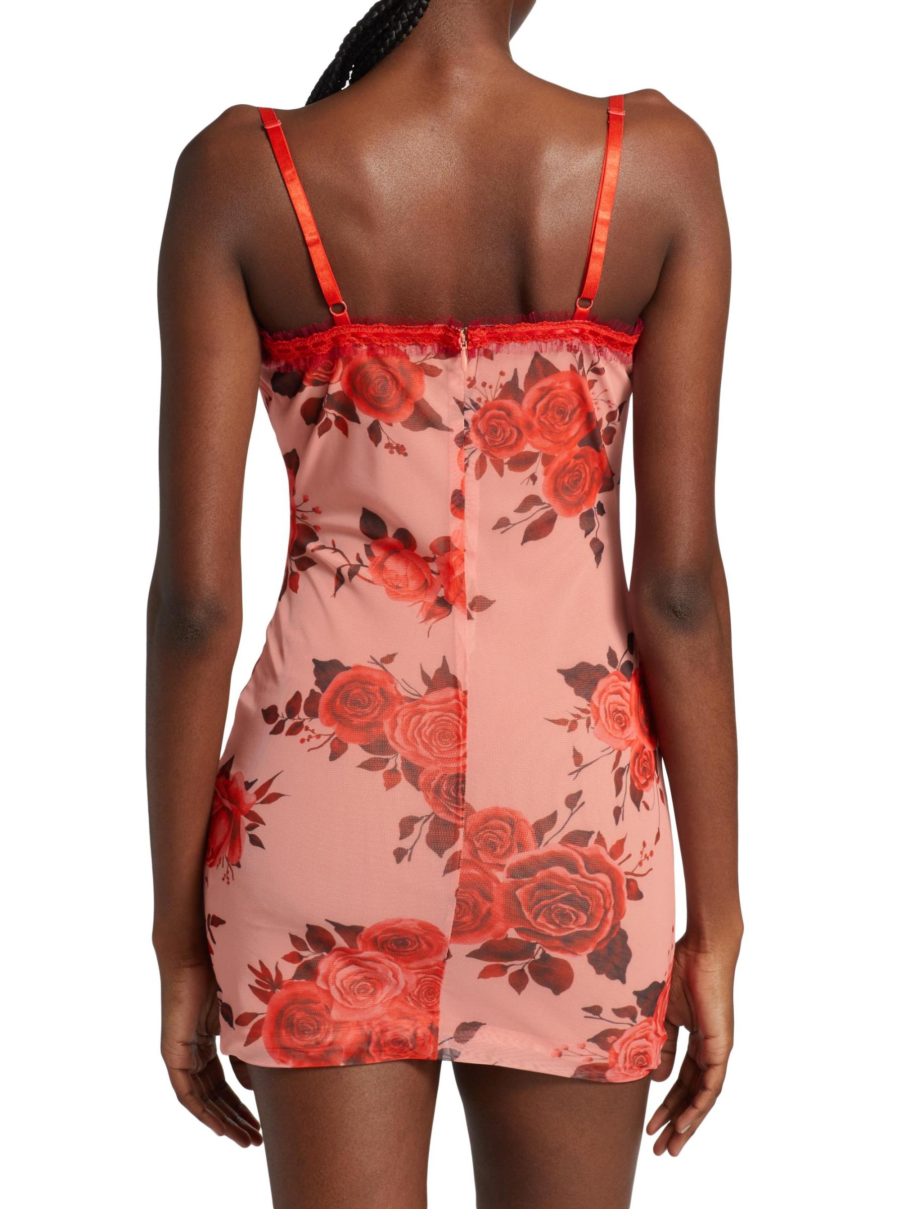 فستان قصير بتصميم شبكي مزهّر