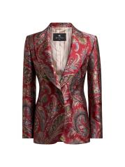تتميز سترة Etro ذات الزرين هذه المصنوعة في إيطاليا بلمسة نهائية ساتانية ناعمة مزينة بجاكار بيزلي مزهّر. تتميز هذه القطعة المصممة خصيصًا بطيات كبيرة الحجم وجيوب أمامية وخصر مبطّن.