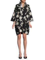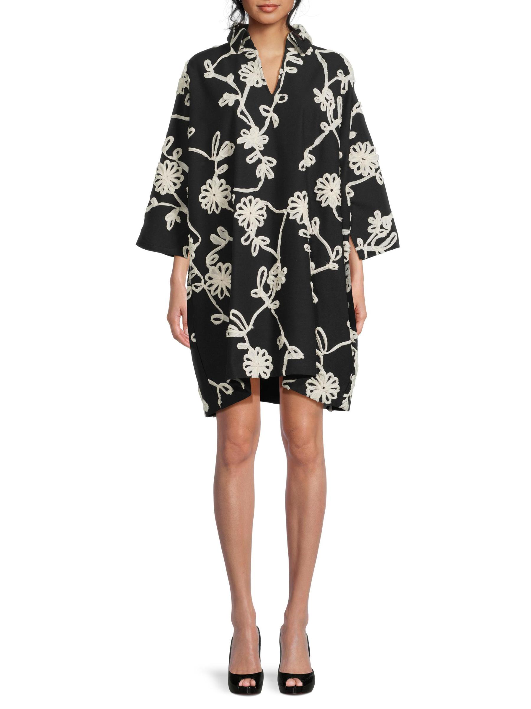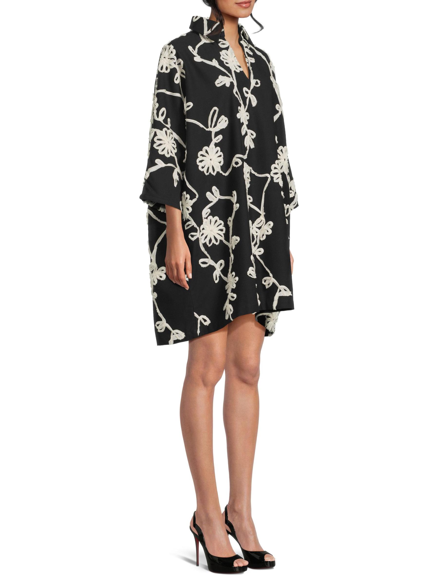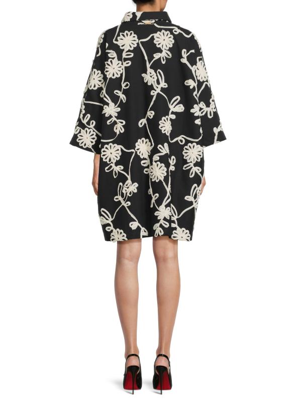 صُنع هذا الفستان المريح ذو الحجم الكبير من La Vie Style House من القطن بزخارف نباتية مستوحاة من الشريط. صُمم هذا الطراز بياقة واسعة واسعة، وأكمام بطول ثلاثة أرباع وإغلاق بأزرار أمامية.
