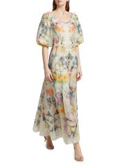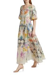 صُمم هذا الفستان الطويل المُناسب والمشرق بنقشة الزهور من Marchesa Rosa بتصميم شبكي وظهر على شكل حرف V.سكوبنك أكمام بالون قصيرة لاتيس، لقد عدت إغلاق بسحّاب خلفي 100% رامي تنظيف جاف مستوردة