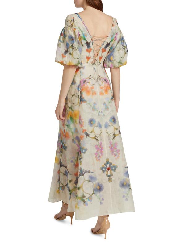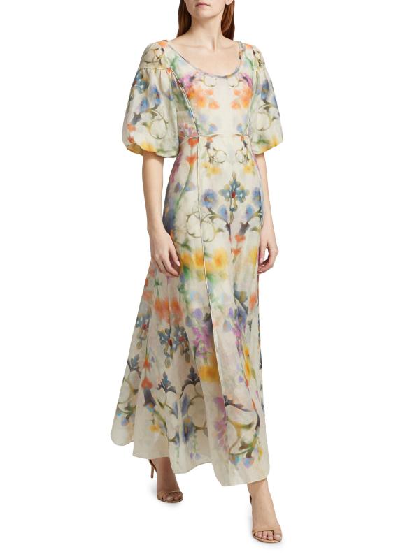 فستان ماكسي مزين برقبة دائرية بتصميم مزهّر