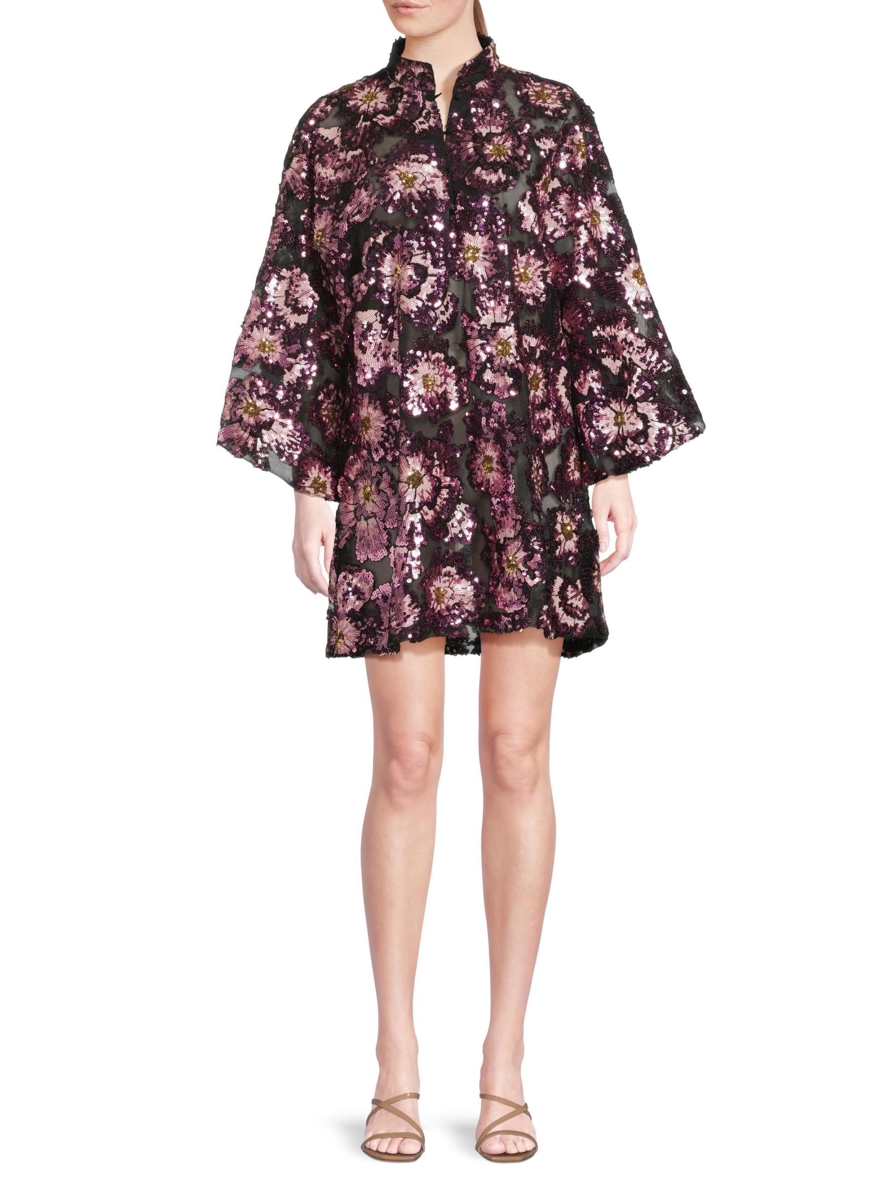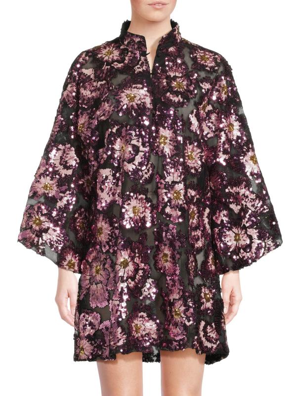 هذا القفطان الصغير من La Vie Style House مصنوع من الشيفون المطرز بالأزهار. تضفي الأكمام بطول السوار والأزرار الأمامية مزيدًا من الأناقة على هذا النمط.