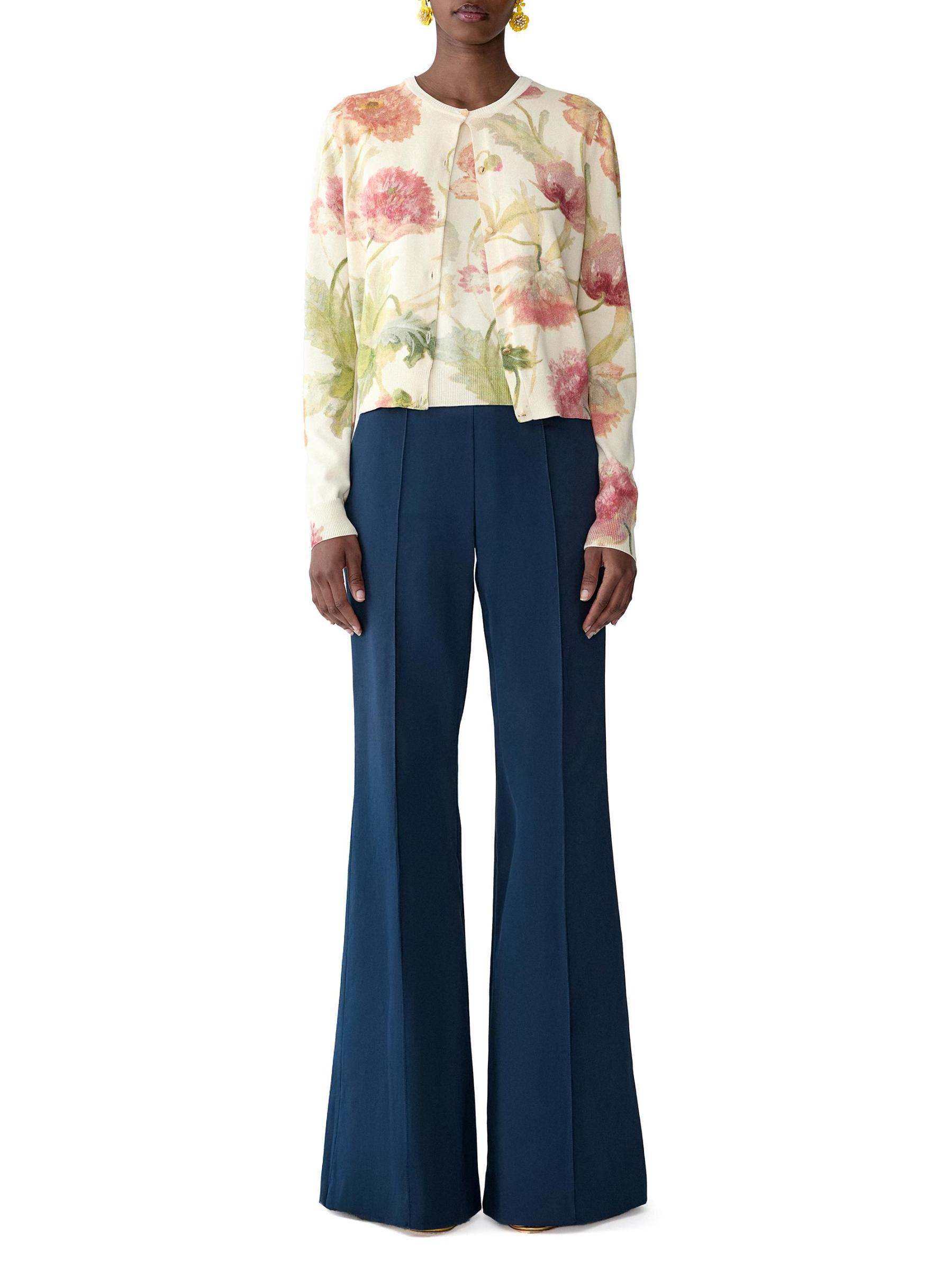 تتميّز بلوزة كارولينا هيريرا ذات الرقبة المستديرة هذه المصنوعة من القطن والحرير بنقشة زهور مذهلة. تم تعزيز الصورة الظلية المريحة من خلال الحواف الأنيقة المحبوكة على شكل أضلاع.