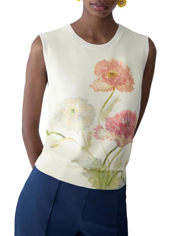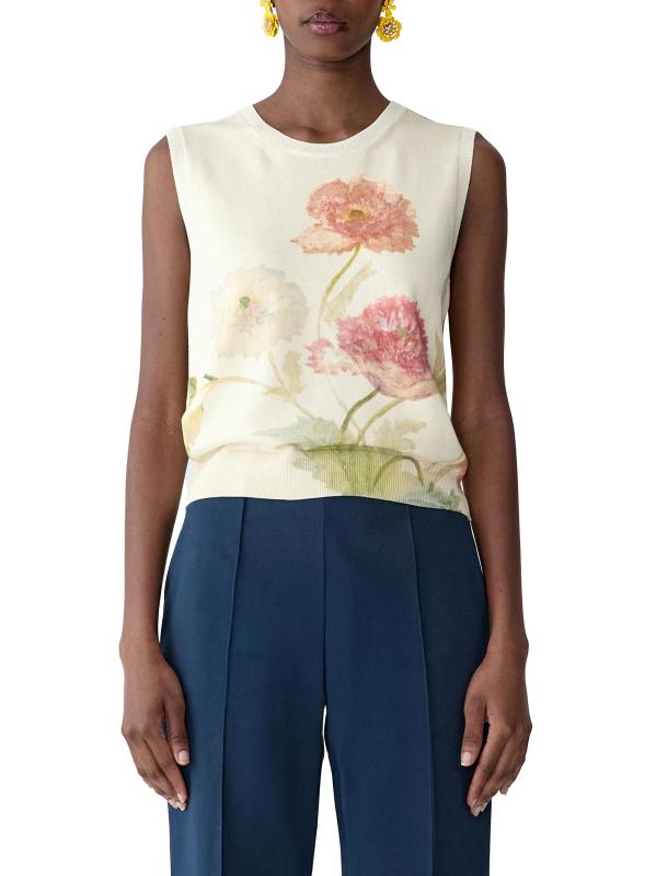 تتميّز بلوزة كارولينا هيريرا ذات الرقبة المستديرة هذه المصنوعة من القطن والحرير بنقشة زهور مذهلة. تم تعزيز الصورة الظلية المريحة من خلال الحواف الأنيقة المحبوكة على شكل أضلاع.رقبة مستديرة بدون أكمام تقليم مضلع تسحب 55% حرير/ 45% قطن تنظيف جاف صُنع في إيطاليا