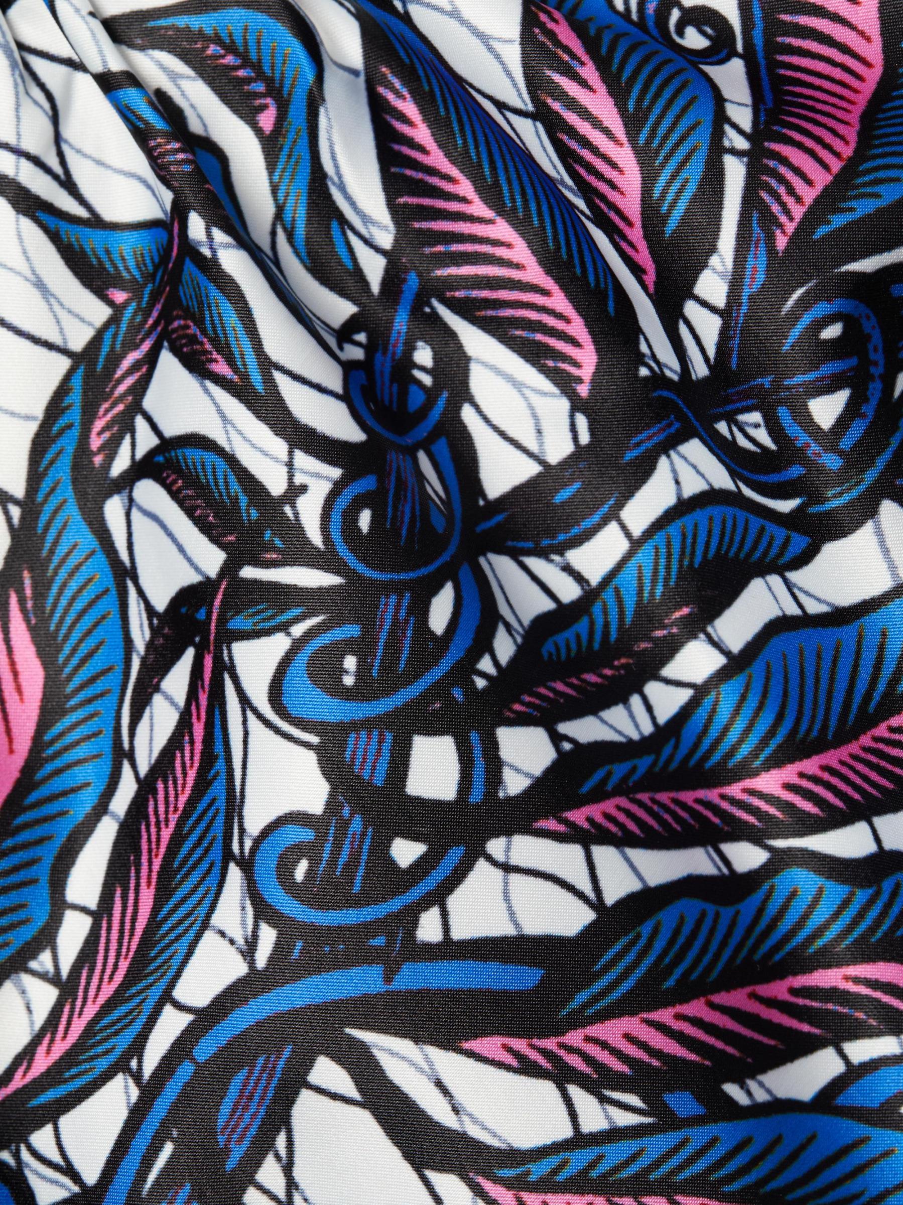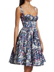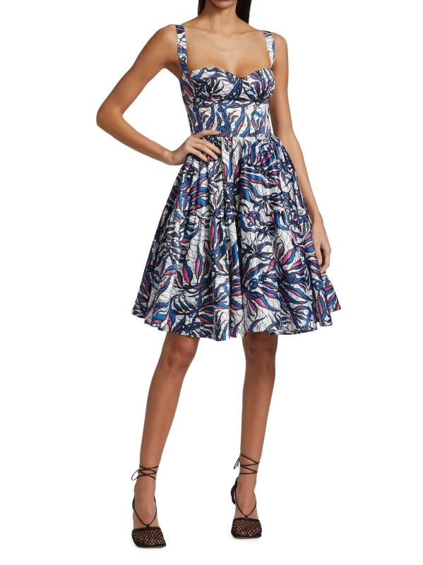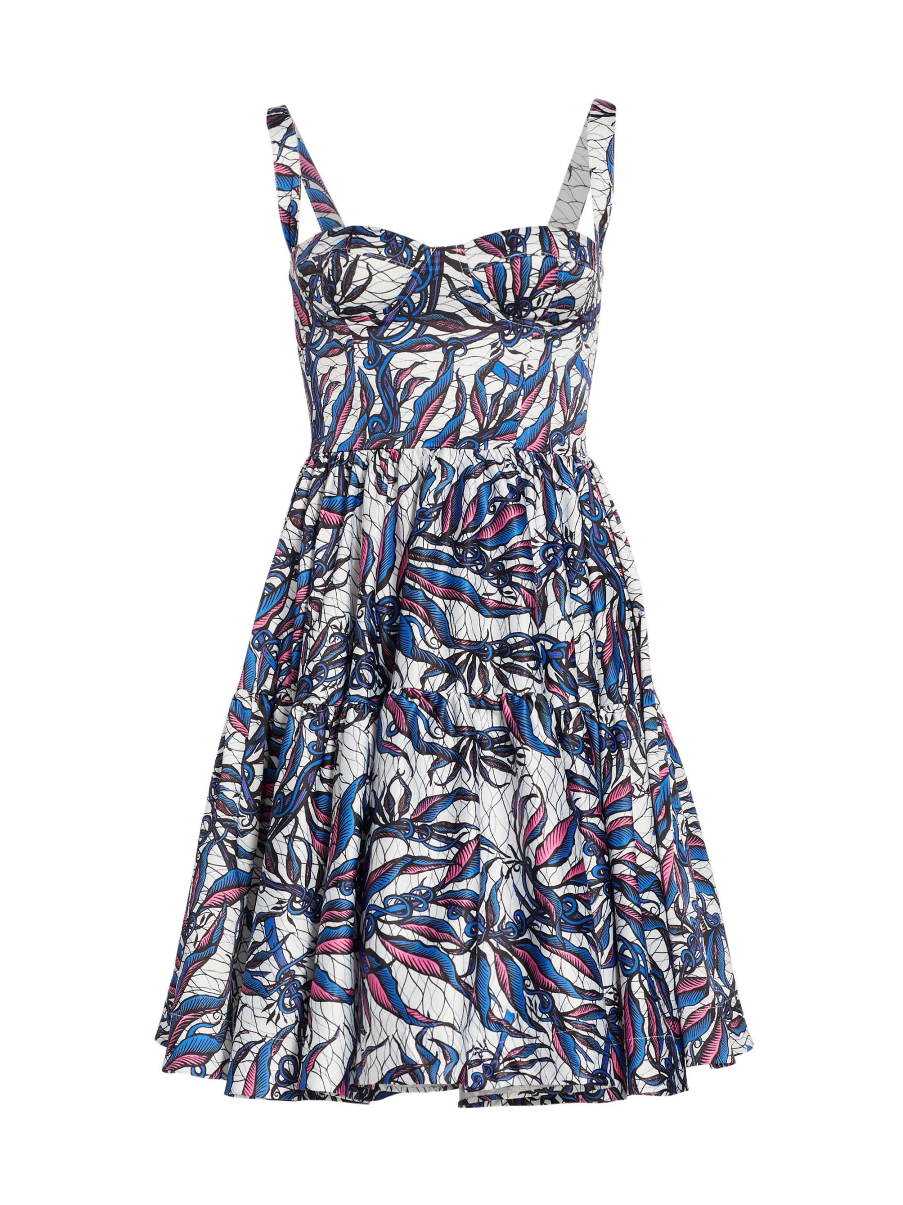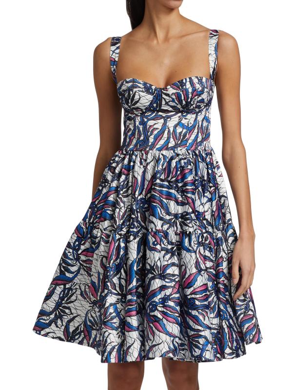 يتميّز فستان CLAUDE KAMENI المتأرجح بنقشة الزهور وصدّار بوستير.