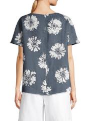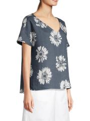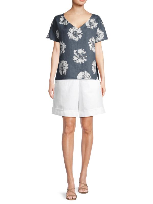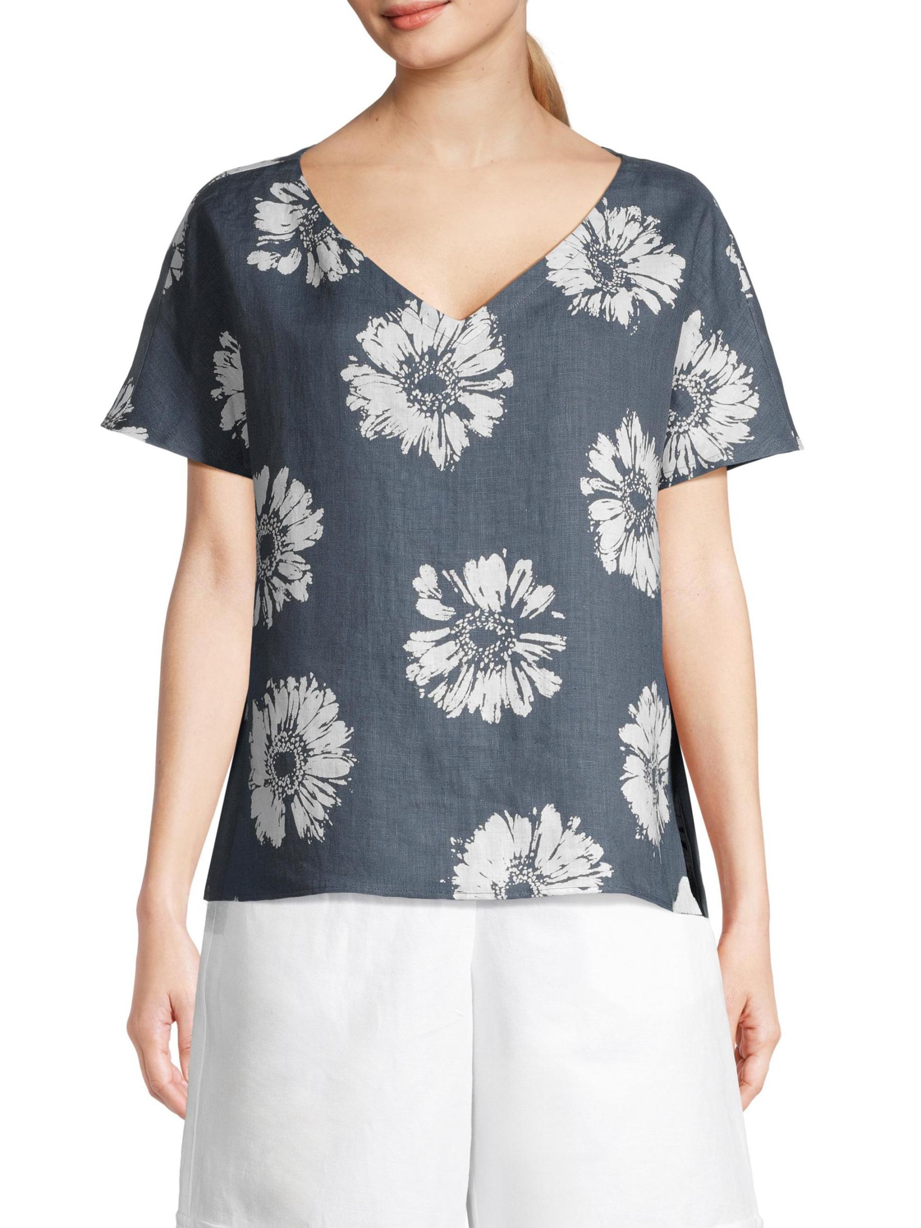 بلوزة كتان برقبة على شكل حرف V بنقشة الزهور