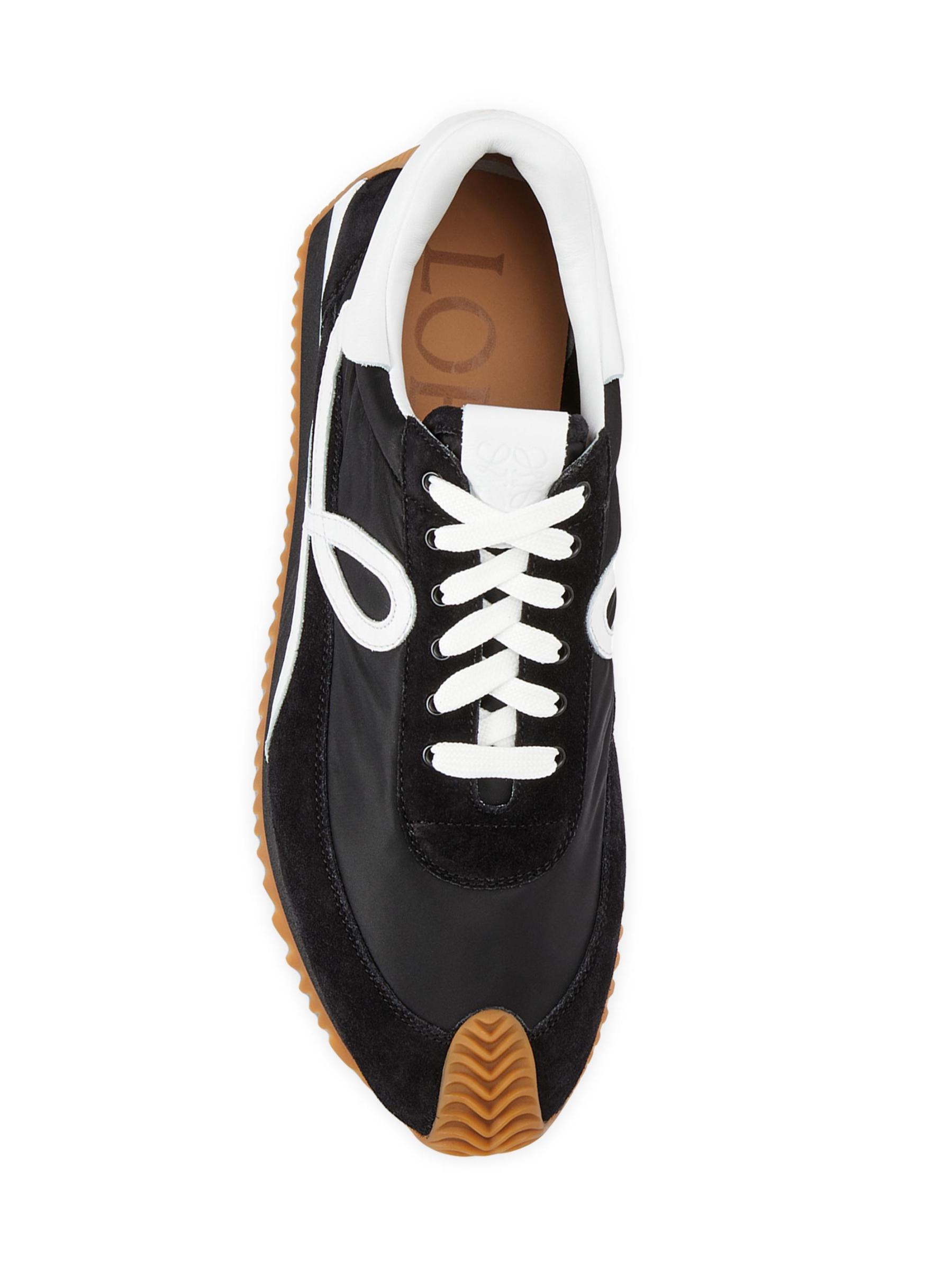 يتميز حذاء Flow Runner المصنوع من مزيج جلد العجل بشعار Loewe على الجانب ويكتمل بنعل مطاطي بلون مغاير.