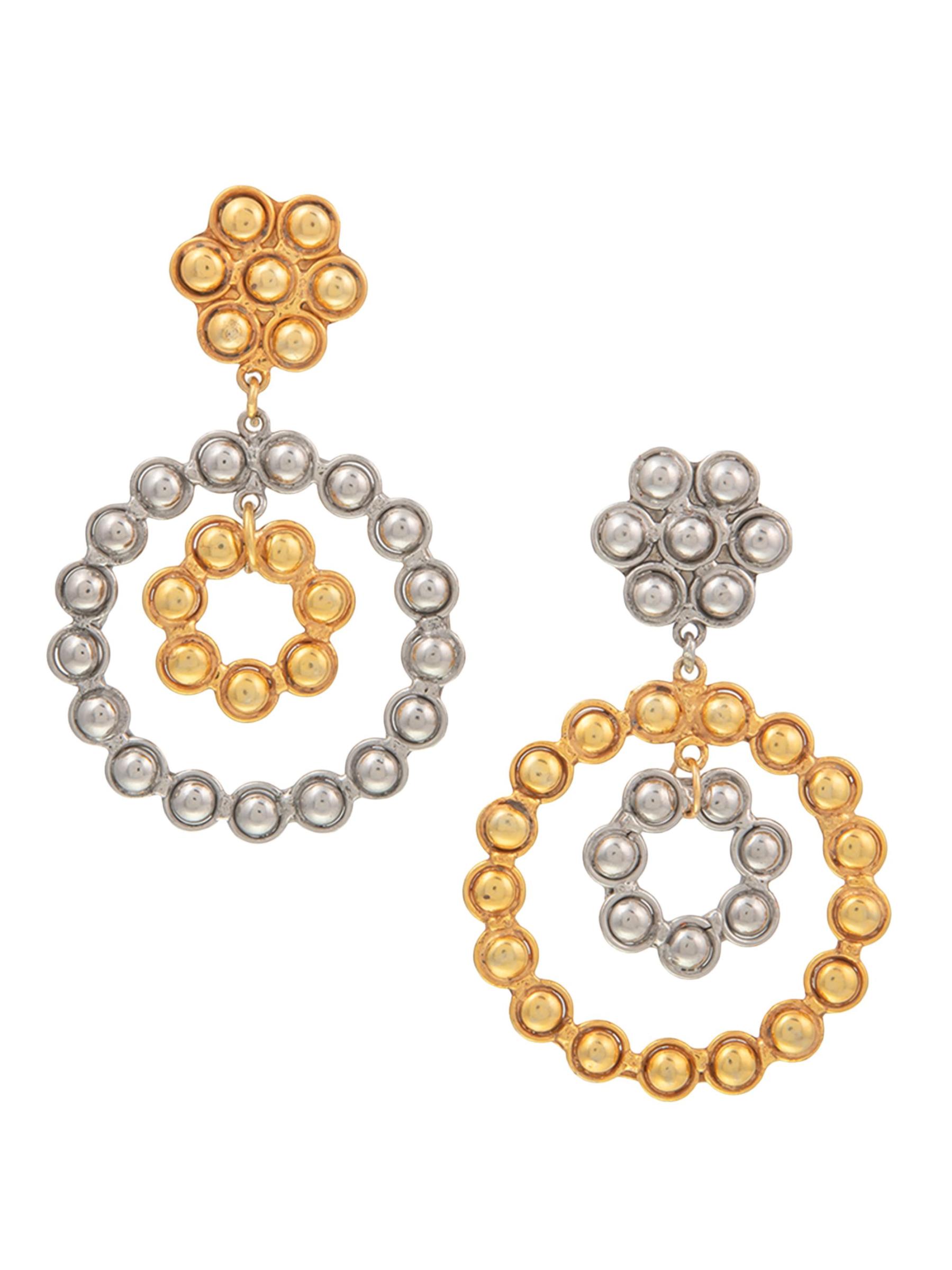 تتميز أقراط Flower Candies من سيلفيا توليدانو بتصميم ثنائي اللون في صورة منسدلة كبيرة الحجم.سيلفيرتون نحاس مطلي بالذهب عيار 22 قيراطًا أرسل مرة أخرى مستوردة
