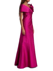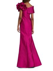 يتميز هذا الفستان المصنوع من الجاكار من Teri Jon من Rickie Freeman بتصميم مكشوف الكتفين مع تفاصيل ثلاثية الأبعاد على شكل زهور.