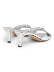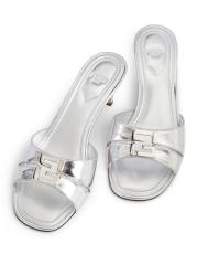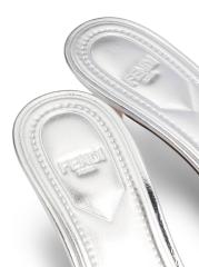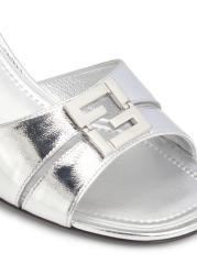 يتميز صندل Fendi Fold المصنوع من الجلد المرن بلمسة نهائية معدنية جذابة وتفاصيل الشعار الأيقوني للعلامة التجارية. تم تصميم هذا الزوج بكعب صغير لرفع لطيف.