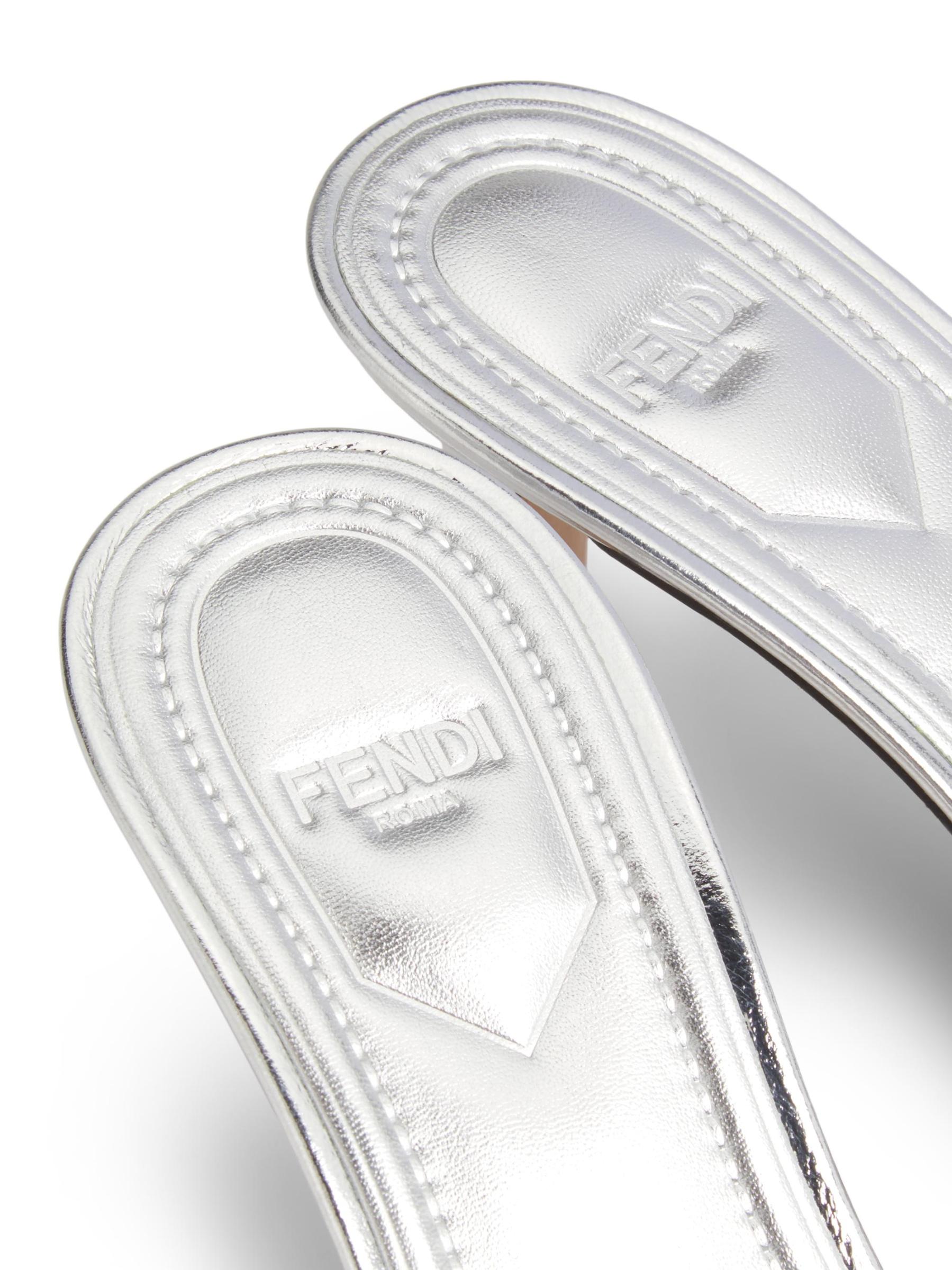 يتميز صندل Fendi Fold المصنوع من الجلد المرن بلمسة نهائية معدنية جذابة وتفاصيل الشعار الأيقوني للعلامة التجارية. تم تصميم هذا الزوج بكعب صغير لرفع لطيف.إصبع مفتوح سهل الارتداء جلد بطانة جلدية نعل جلدي صُنع في إيطاليا