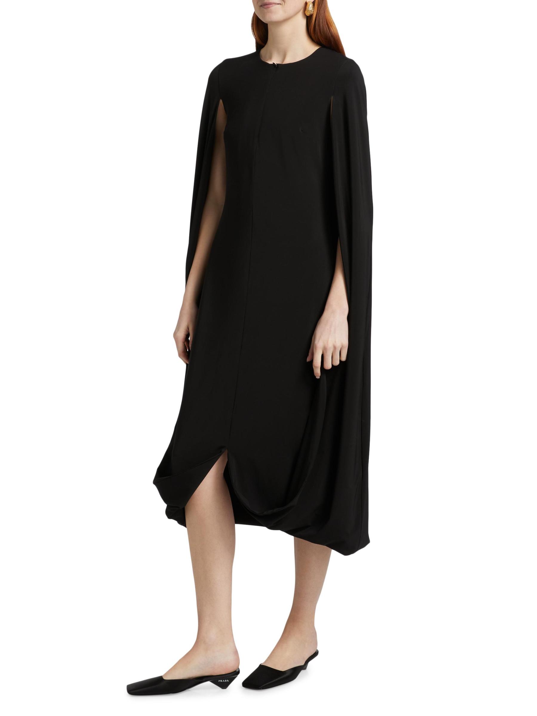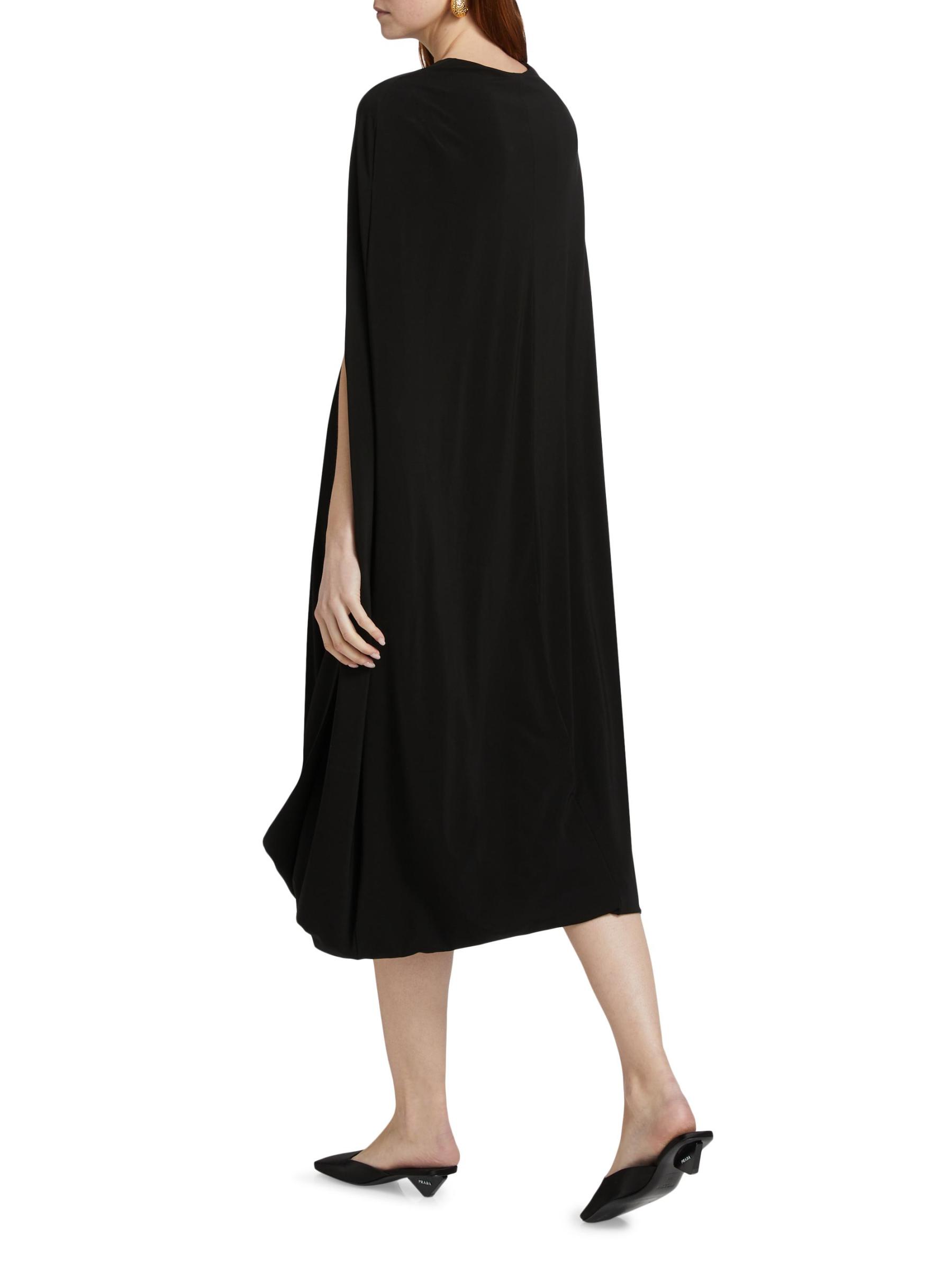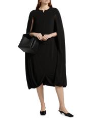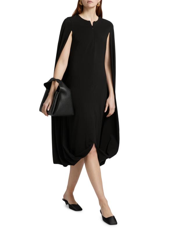 يتميز فستان روزيتا جيتي القابل للطي بتصميم كاكون بأكمام كاب كبيرة وشق أمامي وسحّاب أمامي