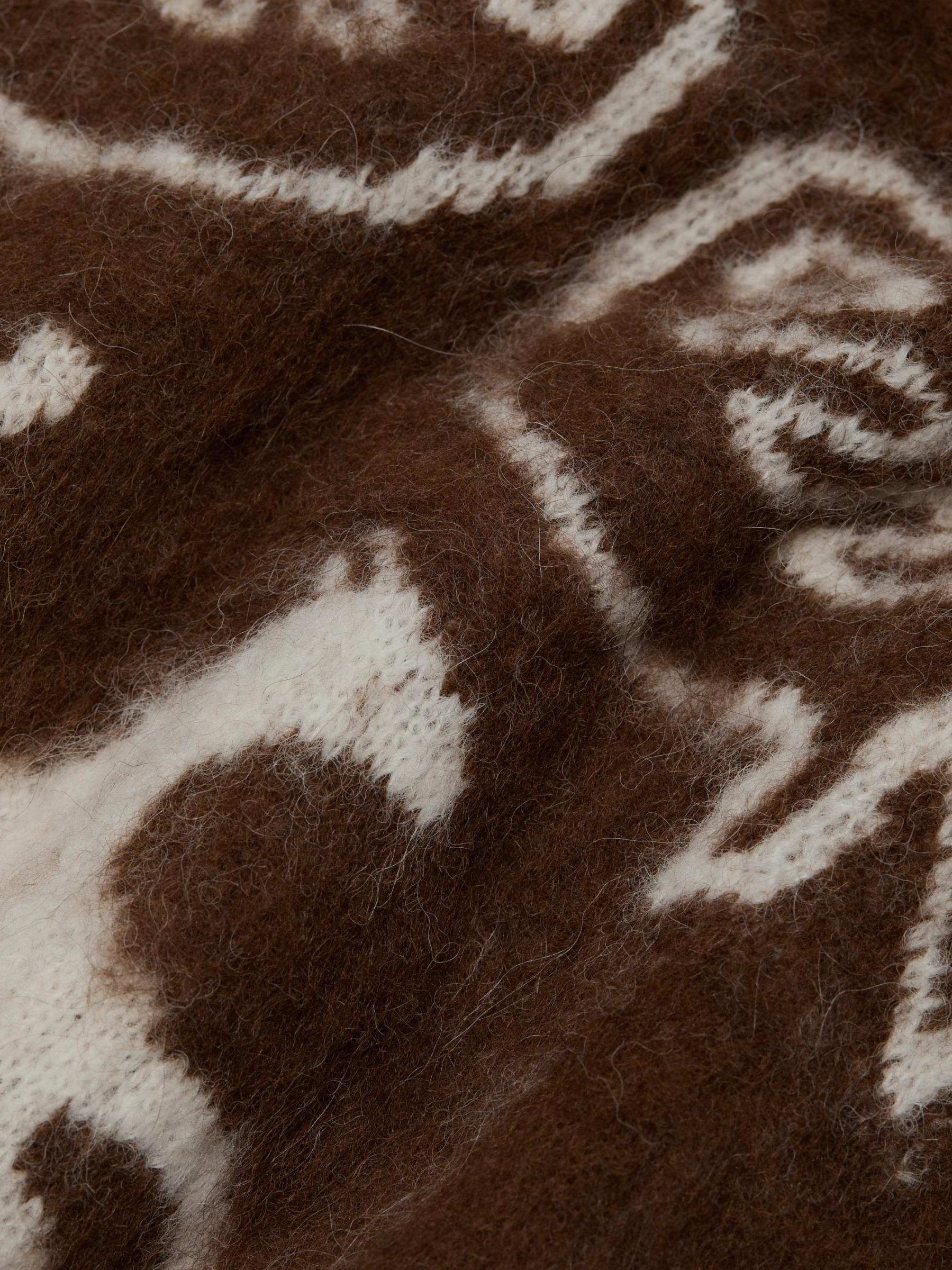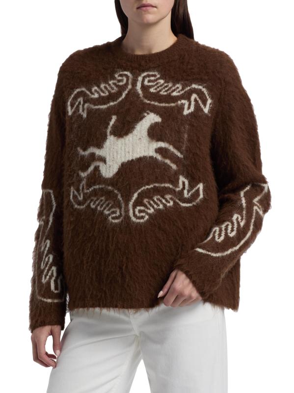 تتميّز سترة فولكلور من Carolina K، المُحاكة من مزيج الألبكة الضبابي، بزخرفة حيوانات ملونة على الأمام والأكمام.